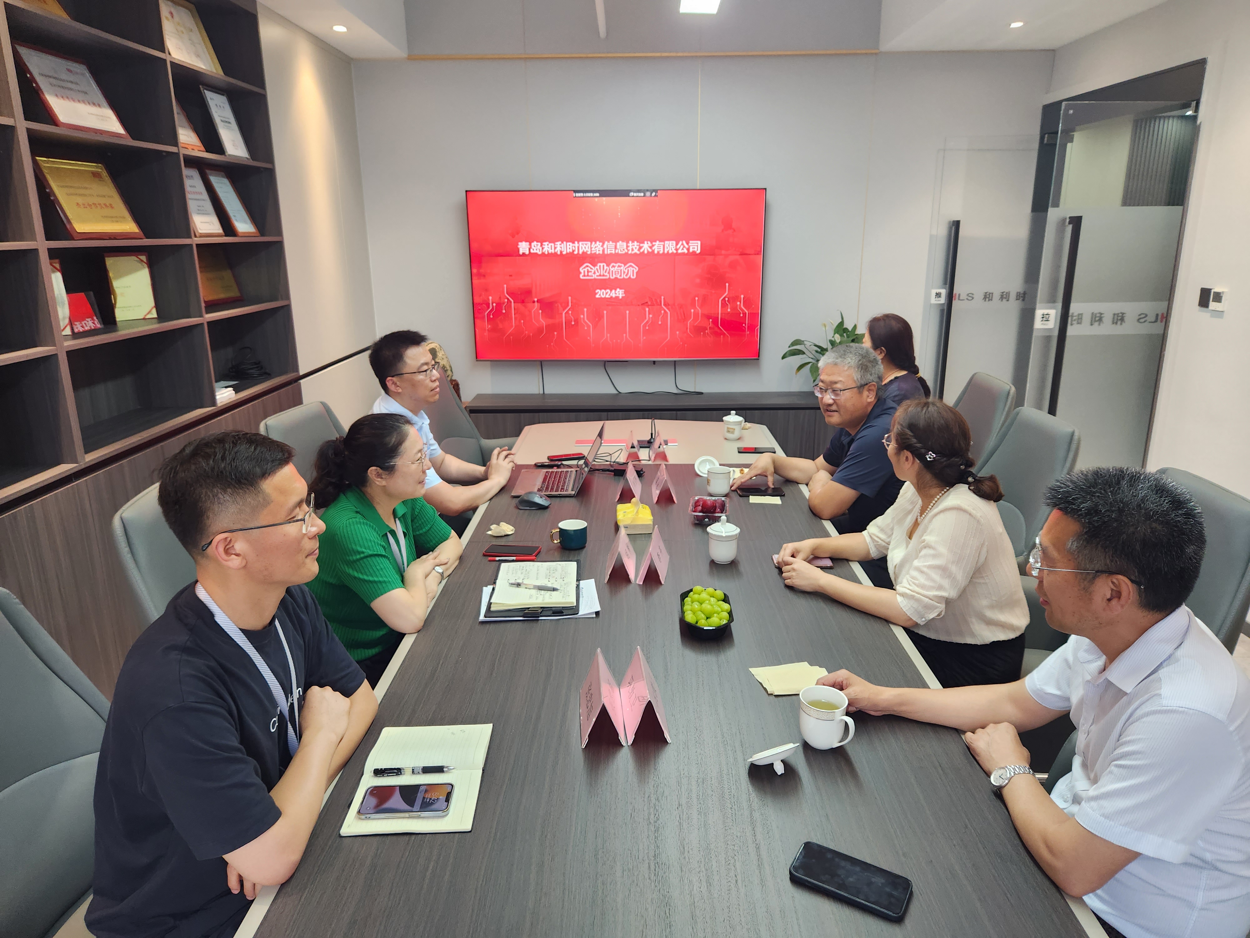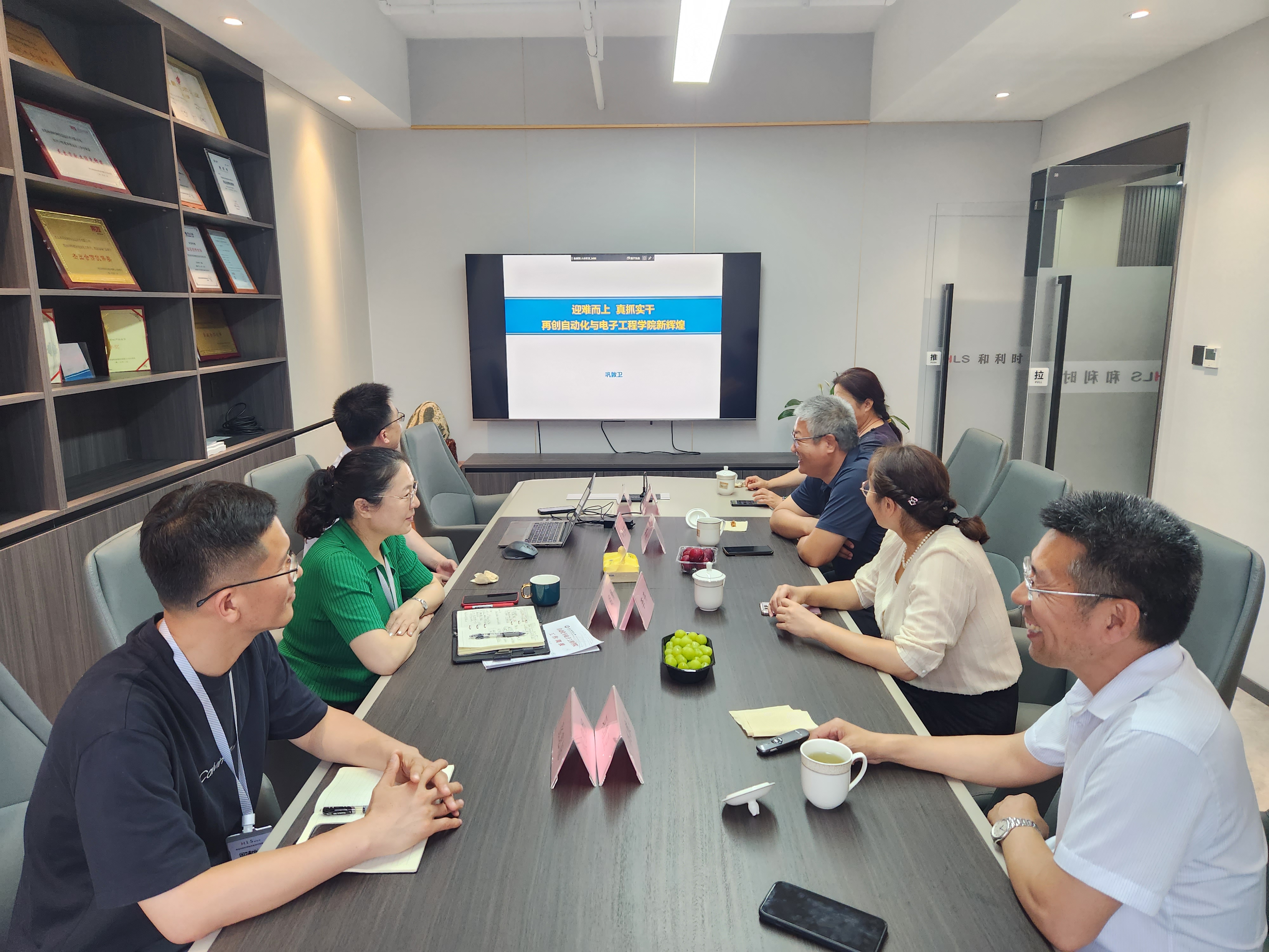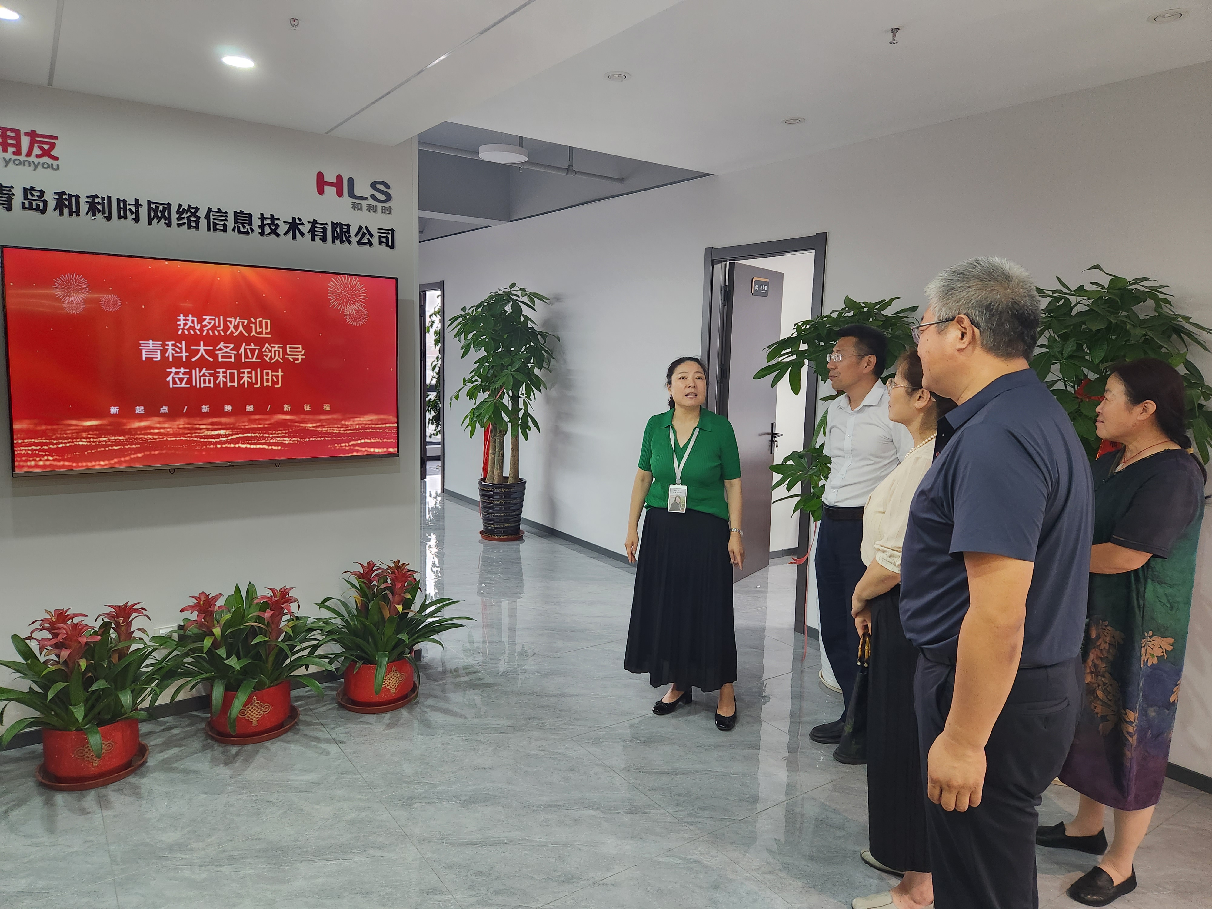党委书记李卉、常务副院长巩敦卫、综合办公室袁莉莉、特邀校友代表郭永一行四人前往1997届校友胡梅创办的青岛和利时网络信息技术有限公司参观走访交流。