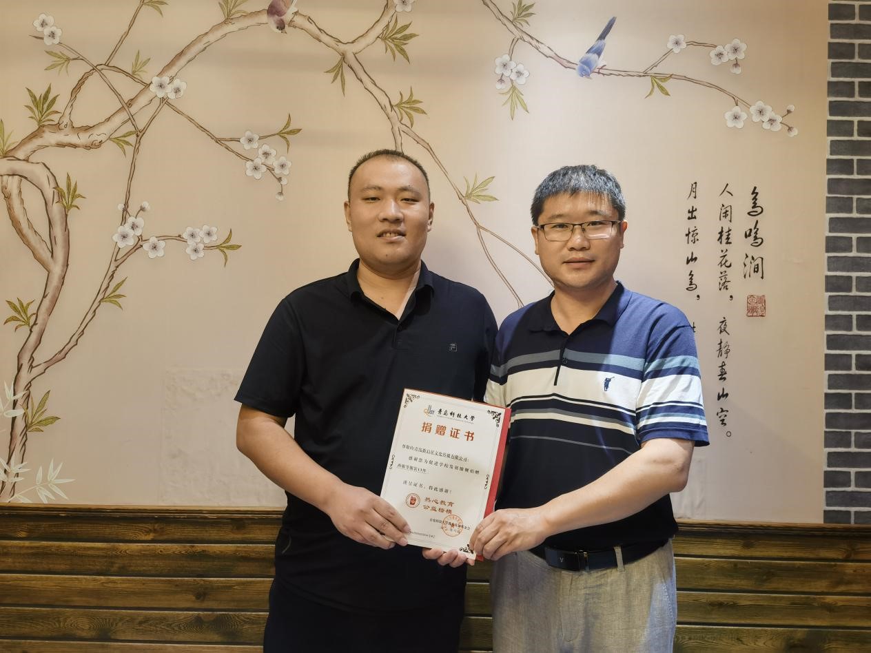 马寒为测控03级校友赵志强、韩金辉颁发捐赠证书