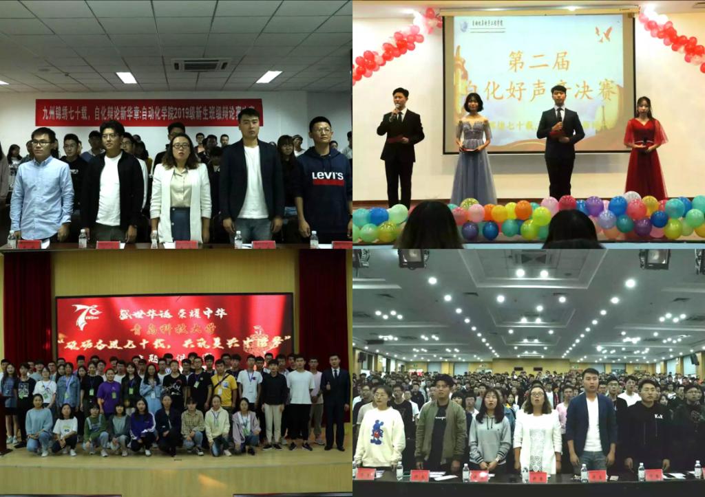 举办了一系列主题文艺活动:新生开学典礼上,一首“我和我的祖国”点燃全场师生的爱国热情;“砥砺奋进七十载,共筑复兴中国梦”主题演讲比赛用一言一词书写对祖国文化的热爱;“祖国辉煌七十载,自化歌颂新时代”第二届自化好声音决赛庆祝中华人民共和国成立70周年;“九州锦绣七十载,自化辩论新华章” 新生班级辩论赛引导自化学子树立新时代正确的世界观、人生观、价值观。