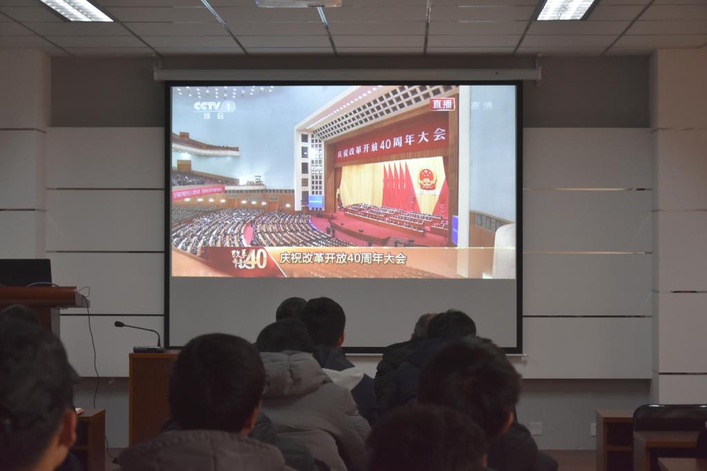 大会历时两个多小时,会议室内秩序井然,现场全体师生认真收听收看,对总书记讲话内容产生极大的共鸣。师生们一致认为,习近平总书记在庆祝改革开放40周年大会上讲话,高瞻远瞩,思想深邃,内涵丰富,必将极大鼓舞全国各族人民振奋精神。在过去40年取得的成绩基础上,再接再厉,创造新辉煌,为决胜建成小康社会,不断开创中国特色社会主义新局面,为实现“两个一百年”奋斗目标、实现中华民族伟大复兴继续奋斗。
