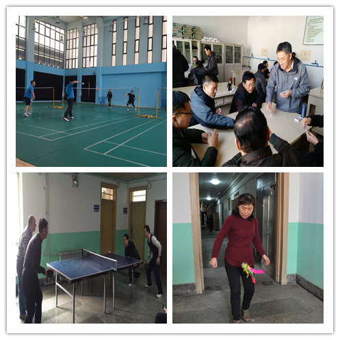 跳绳和踢毽子计时一分钟,各位老师都使出浑身解数,有几位女老师明显擅长于跳绳,抡起来飞快,反着跳也不在话下。青岛的三月也依旧是北风盛行,考虑到这一点,踢毽子比赛的地点改到了教学楼大厅里。几位老师很早就跃跃欲试,计时开始,各位老师赶忙抛起键子,大部分老师是靠鞋子内侧,也有的老师技术特别,用鞋外侧靠近后脚跟的地方踢,实在够不到只能绷起脚尖,做个大踏步。几轮运动下来,有几位年纪稍长的老师气息微喘,笑一声老,抹两把汗,酣畅淋漓。“双龙戏珠”是两人背靠背夹住一个气球运到远处的椅子上,再把气球做爆,返回。配合的老师竭尽全力向目标靠近,可是往往你牵我拽,走不了直线,好不容易到了椅子边上,一转身没抓住气球,就瞬间就被风抢走了,无奈只得再来一次。大家状态百出,笑声不断。扑克够级就更讲究团队合作和判断能力,要有牺牲精神。或送“科”或抓“落”,有人得心应手,有人懵懵懂懂。但不论比赛输赢,够级比赛都提现出了一种全局观念,整体意识。羽毛球和乒乓球赛场上运动员们挥汗如雨,积极拼搏,展现出了自动化人饱满的精神风貌及凝心聚力的团队精神。比赛为广大老师提供了一个切磋球技、展示自己的机会,增进了老师间的友谊,促进了各教研室实验室间的沟通和交流,增强了Netflav