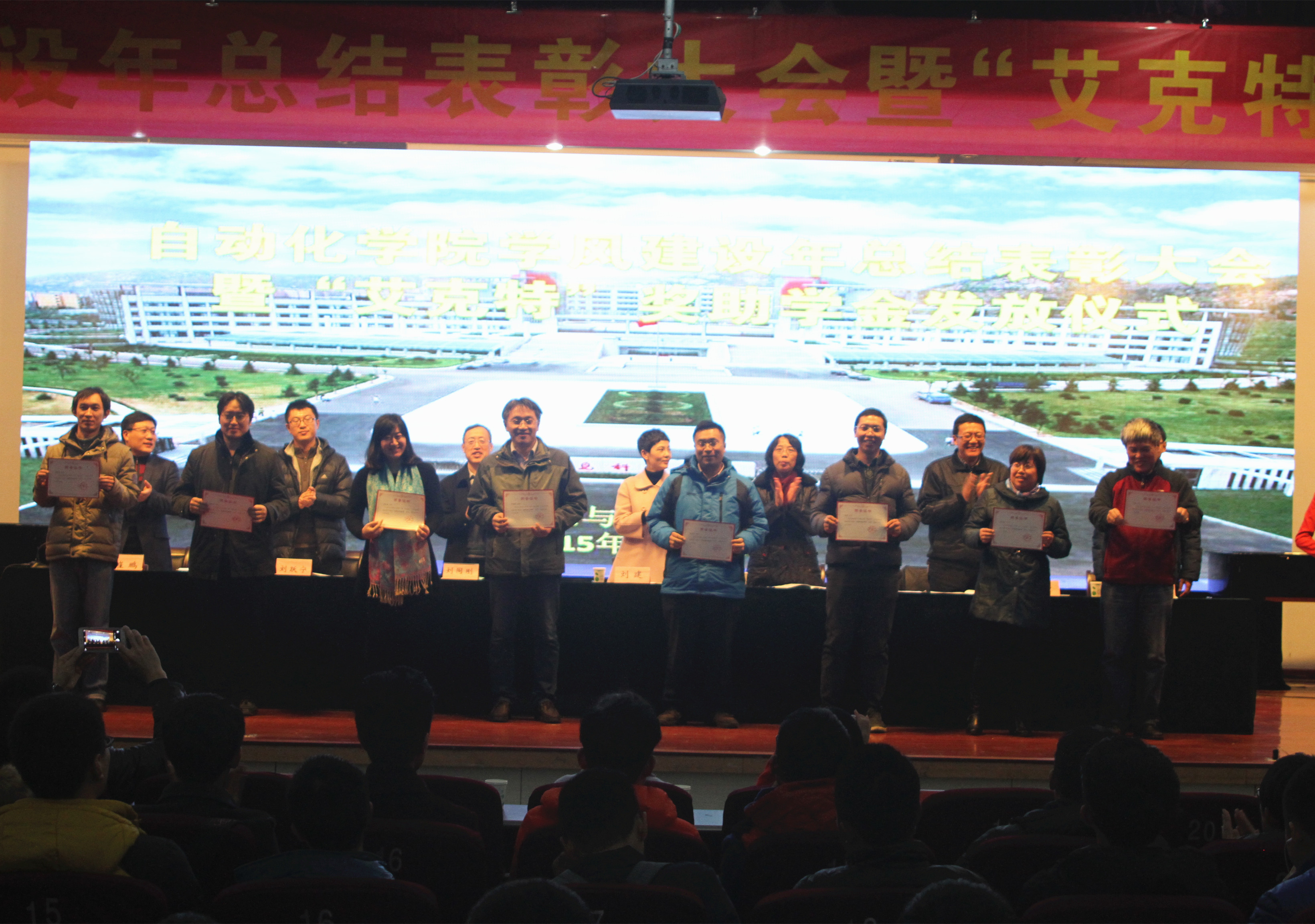 学风建设年总结表彰大会暨“艾克特”奖助学金发放仪式在崂山校区第二报告厅举行。无锡市艾克特电气股份有限公司董事长总经理刘建,Netflav