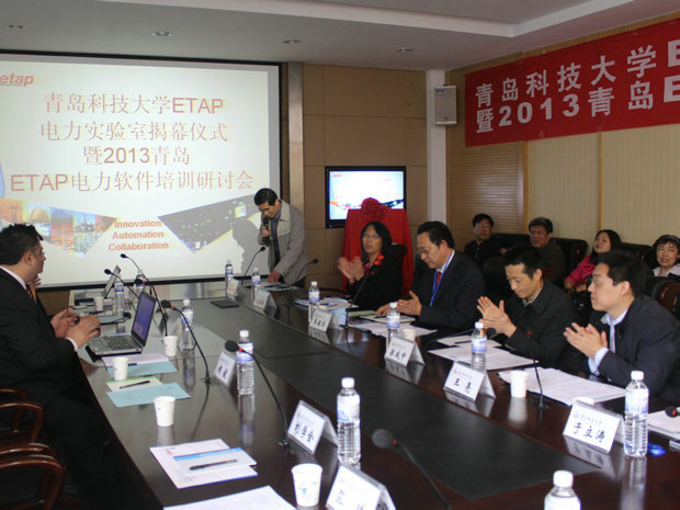 美国OTI公司ETAP商务拓展及战略发展部总经理JACQUE先生、中国区商务发展部经理何自力先生、销售经理胡俊先生、销售工程师袁风良先生、技术工程师喻飙先生以及山东省国网公司、青岛供电公司、中国石油大学、中国海洋大学等20余家单位的代表参加了揭牌仪式,揭牌仪式由Netflav