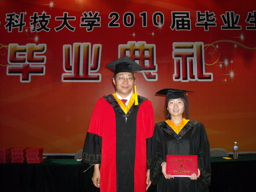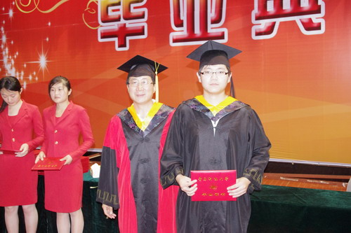 最后韦殿华与王培山为身着学士学位服的毕业生一一扶正学位帽,拨正流苏,颁发毕业证书,并与他们合影留念。毕业典礼结束后,与会领导和老师们与毕业生握手告别,毕业生纷纷表示在以后的人生道路上会更加努力,以更加优异的成绩回报母校。