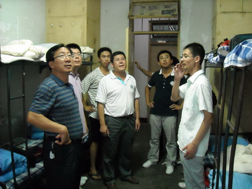 党总支书记、院长王培山、副书记吴汉勇和分团委老师前往22号男生宿舍楼看望慰问2009级新生。