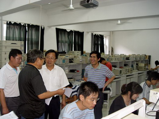 党总支书记兼院长王培山、副书记吴汉勇、副院长刘喜梅、童刚在实验室、分团委相关老师陪同下,来到电工电子实验中心看望了正在备战山东省电子设计大赛的同学们。