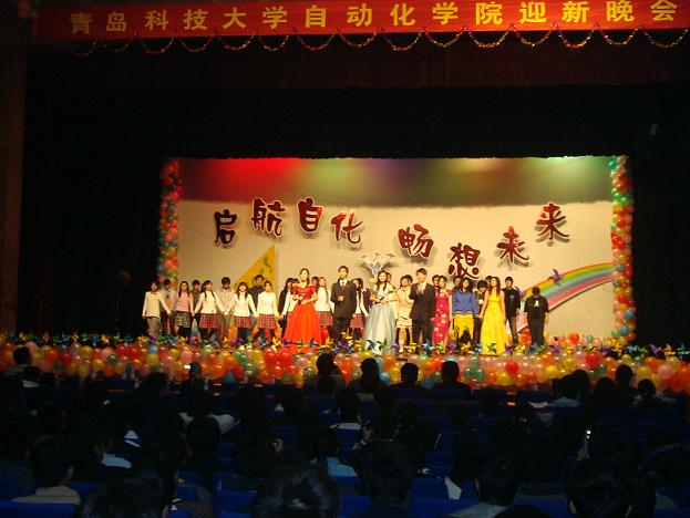 开展的新生节进行了回顾。学生会艺术团自编自导的话剧《逃课无间道》以电影《无间道》为参考,深刻警示同学们要珍惜自己的大学生活,珍惜自己的人生。最后,伴随着青岛市颐高中心形象代言人青岛赛区冠军毛衍的歌声,迎新晚会圆满落幕。