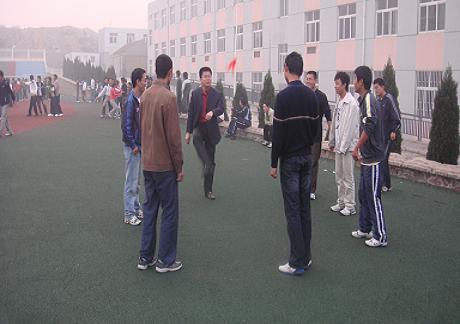 学子的活力与风采。与此同时,刘名森老师的身影不时的出现在同学们的视野中,只见他与七八个男生围成一圈,玩踢毽子活动。在这欢乐的时刻,现场活动高潮迭起,师生同乐,趣味无穷。