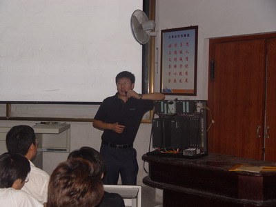 首先学生们参观了巡展车内的全集成自动化设备、全集成能源系统和办公自动化设备,西门子公司技术专家详细讲解了系统的组成和工作过程,向大家展示了西门子公司的PLC产品、通用变频器、Wincc软件环境等高科技产品。随后西门子公司的技术专家在1教201室为Netflav
