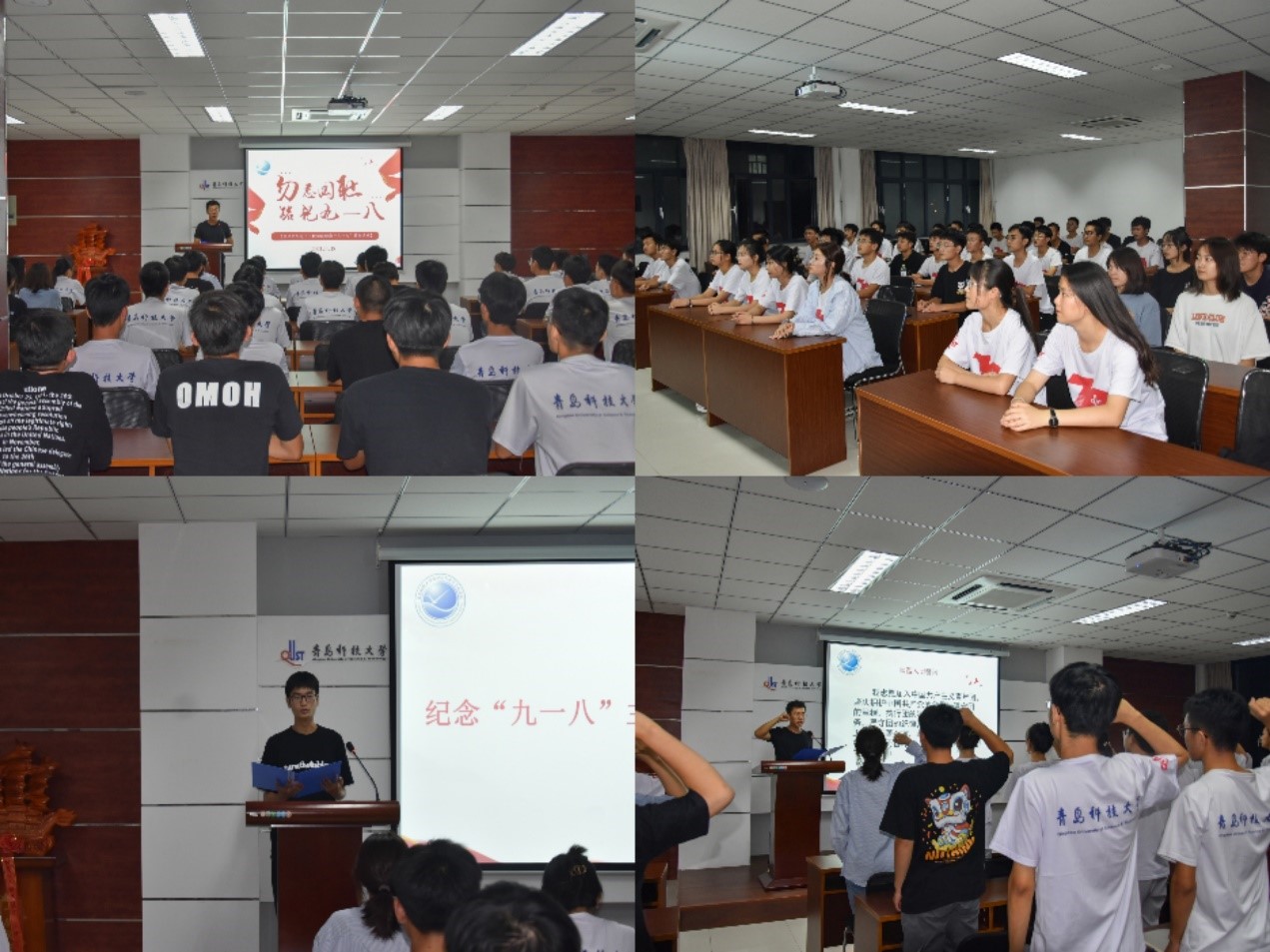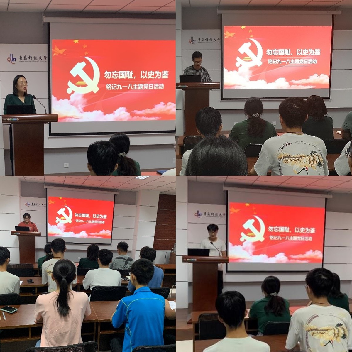铭记历史,砥砺前行。9月17日晚上,Netflav 组织20级学生代表于Netflav 楼406开展纪念九一八宣讲会。所有与会同学一起观看九一八纪录片,共同回顾了那段难以忘却的历史。一幕幕触目惊心的画面,牵动着全体同学的心脉,提醒、告诫着同学们:勿忘历史,勿忘耻辱。学生代表何诚发表演讲,号召大家时时警示和鞭策自己,发奋图强,为共产主义事业而奋斗终生。宣讲会最后,全体同学起立,由刘保顺同学带领宣誓,重温入团誓词。