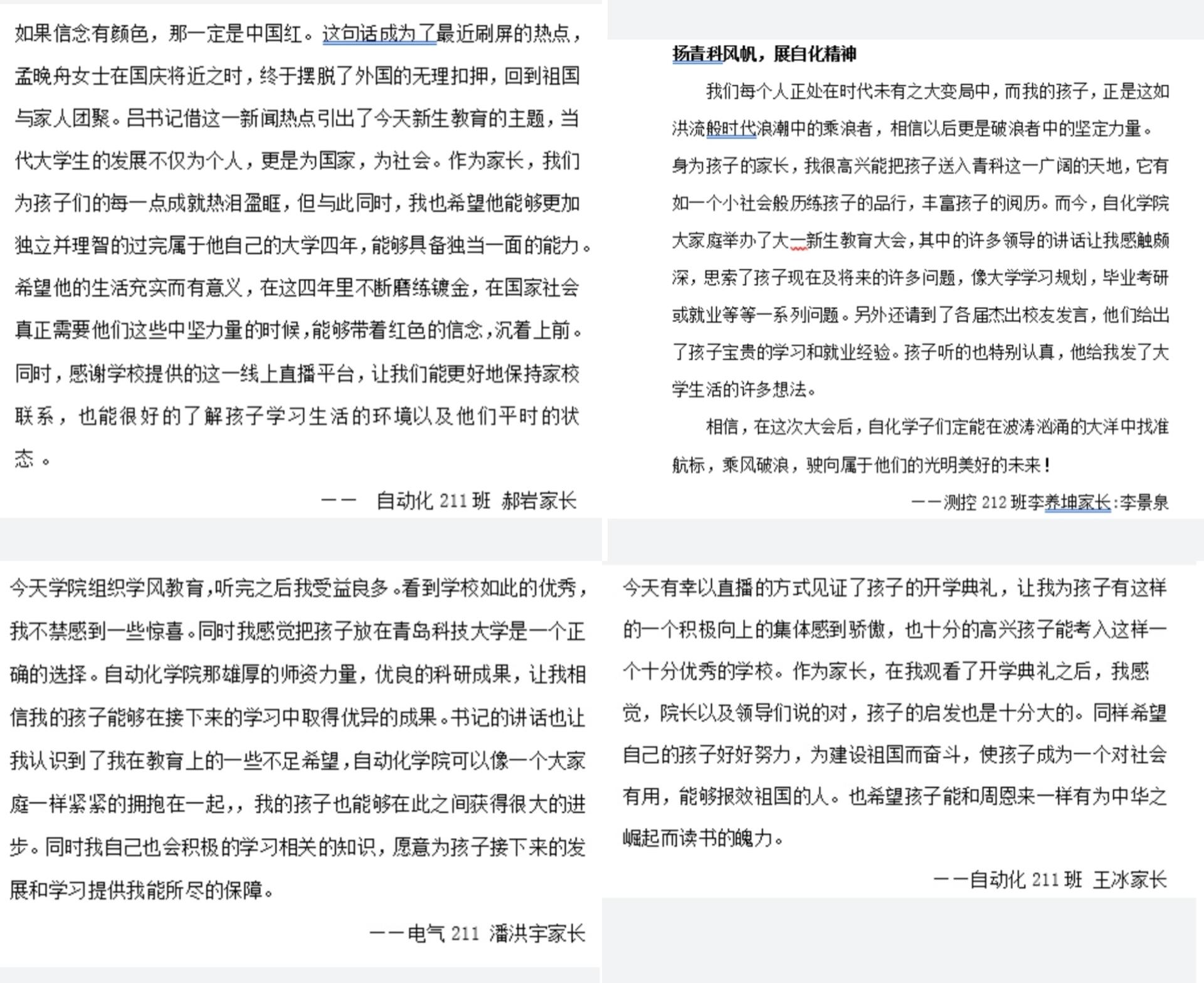 及专业概况,树立正确价值观念,涵养优良学风有着重要积极影响,也是搭建家、校、院、企共商共育平台的良好契机。相信广大自化学子在今后的学习生活中,必将激流勇进,立凌云之志,努力成长为有精神、有文化、有责任、有活力、有特色的新时代大学生。