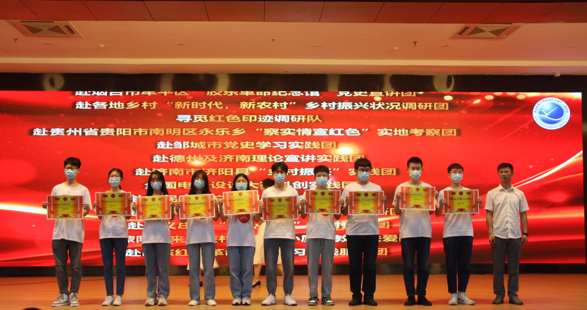 2021年暑期社会实践先进集体和个人颁发奖状。