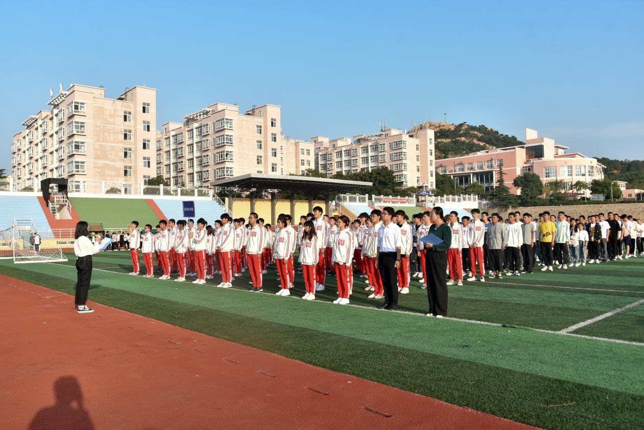 在南苑操场举办升旗仪式。现场学生队列整齐,庄严肃立。伴随着雄壮的国歌,五星红旗在清晨的阳光中冉冉升起。在庄严的五星红旗下,Netflav