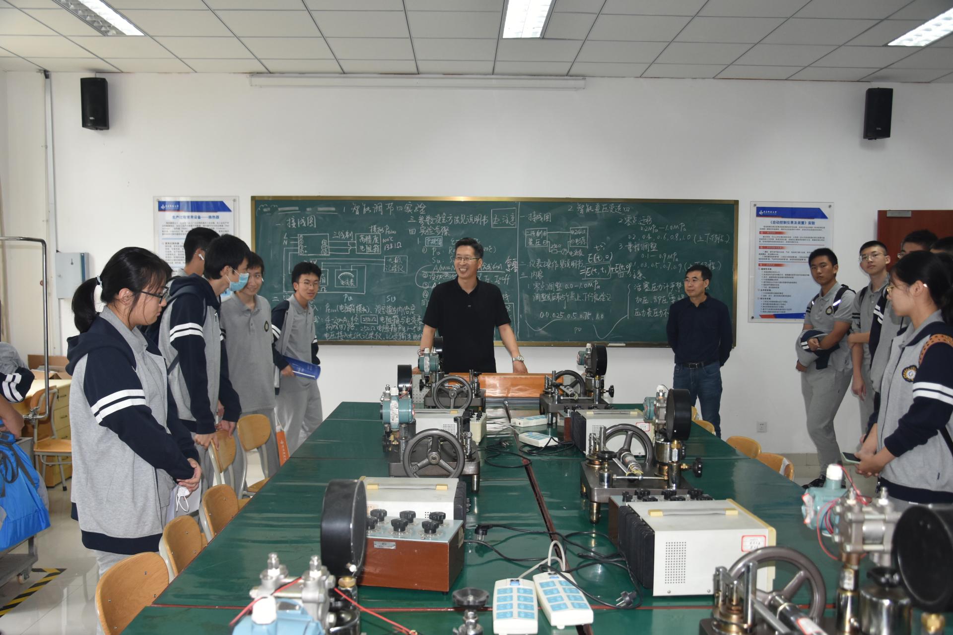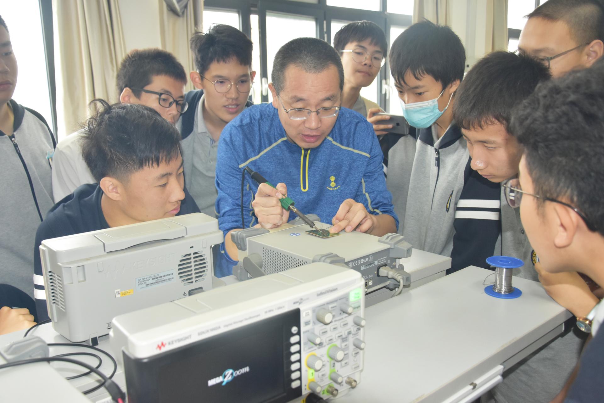 专业情况,带领他们参观了专业实验室并组织学生进入电工电子实训中心,在郝生武等老师的指导下进行电路板焊接实践操作。