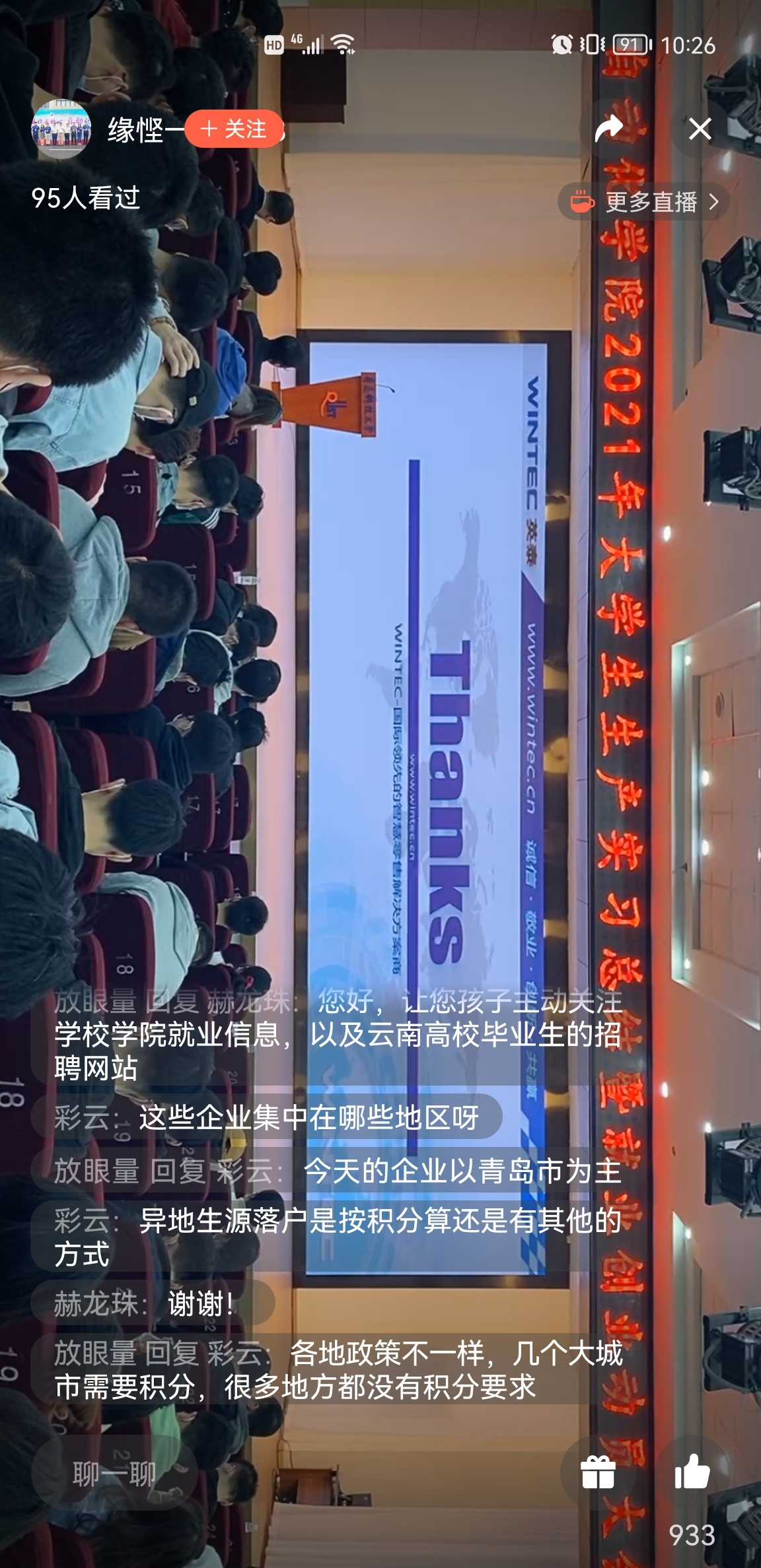 电信181班左权同学代表实习生就实习期间所思所得与在座同学做分享。随后,空中双选会拉开帷幕,近30家企业以网络会议的形式进行宣讲,同学们纷纷加入到自己感兴趣的企业的网络会议室,听宣讲、投简历,参与热情高、效果好。