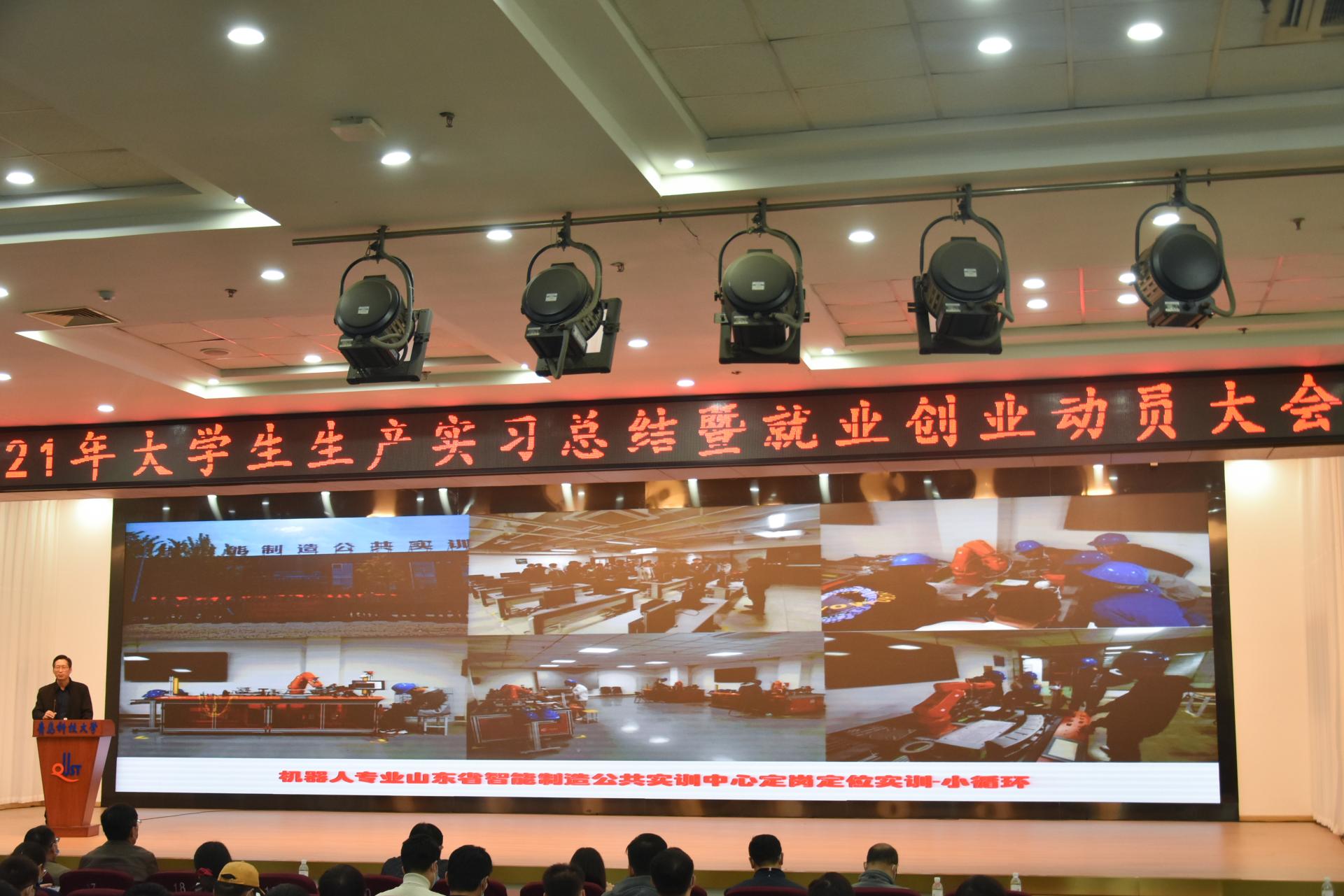 在第二报告厅举行2021年大学生生产实习总结暨就业创业动员大会。教务处副处长贾建闯,学生处副处长、就业指导中心主任徐华,Netflav