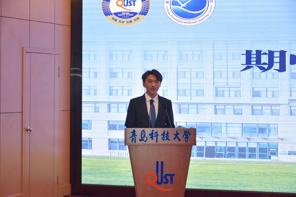 团委副书记兼学工办副主任于彬老师为期中考试优秀同学颁奖。
