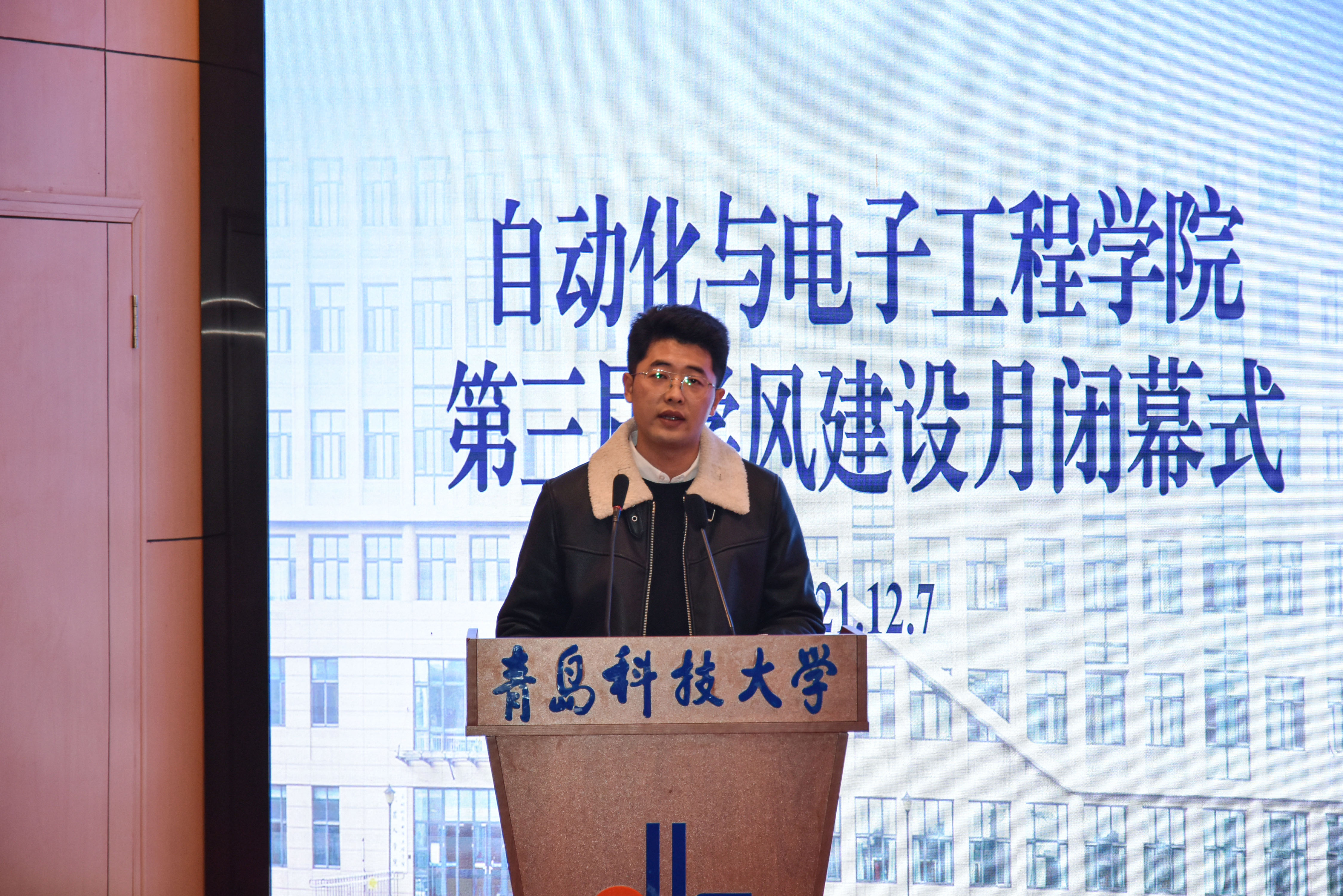 党委副书记兼副院长马寒在闭幕式上讲话。从“实”和“巧”两方面对学风建设进行总结,“实”即为踏踏实实地学,扎扎实实地练,掌握最基本的知识,树立扎实稳健的学习态度,培养学习兴趣,合理安排学习时间,善学善问,勤学苦练;其次要做到“巧学”,善于发现规律,掌握技巧与方法,学好三方面本领:巧妙运用学习方法,力求最佳学习效益;巧妙安排学习时间,计划细致,目标明确;巧妙比较、思考,找出差距,探寻最佳学习习惯和方法。号召广大自化学子在新形势下正确对待机遇挑战,守正创新,久久为功,收获精彩人生。
