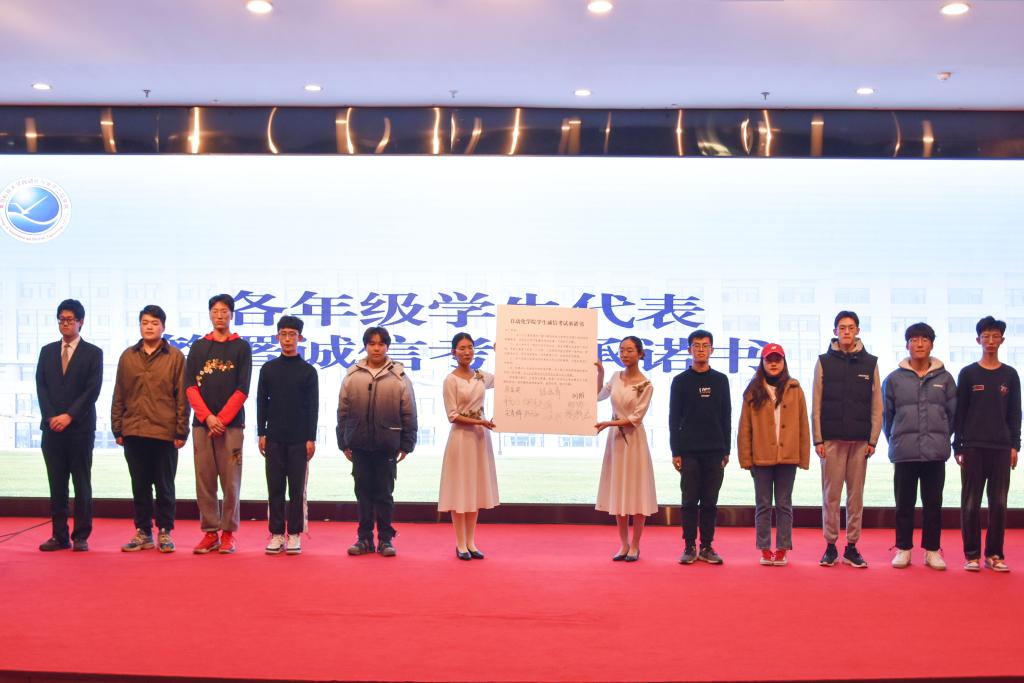 闭幕式最后,各年级优秀学生代表上台在诚信考试承诺书上签字,号召全Netflav