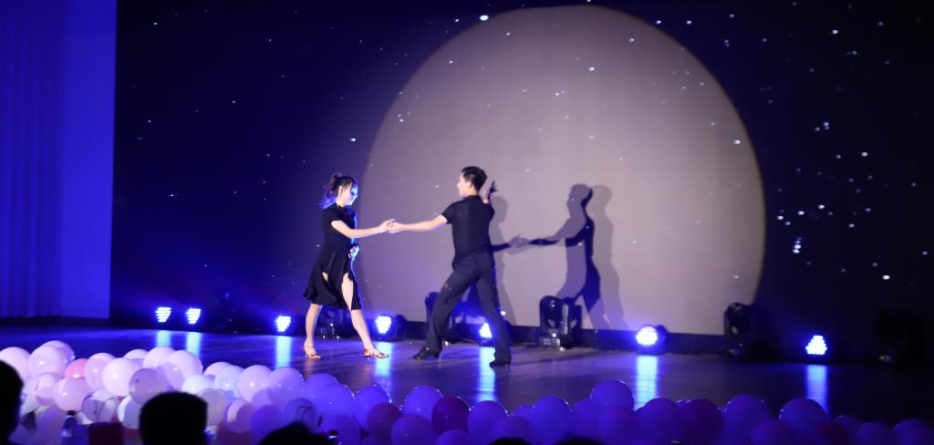 十佳歌手优秀选手刘毅与何刘沅享共同演唱的《星辰大海》拉开第一篇章的帷幕,歌声悠扬,深入人心,表达了青年学子对梦想的执着、对未来的期盼;爱体育,兴科大,AI活力展风采,体育舞蹈俱乐部带来《体之美·梦之形》,用激昂的体育舞蹈彰显自化学子的青春昂扬;音乐与相声全新结合,《“弹”笑风生》在欢声笑语中展现研究生的多彩“研”读生活;