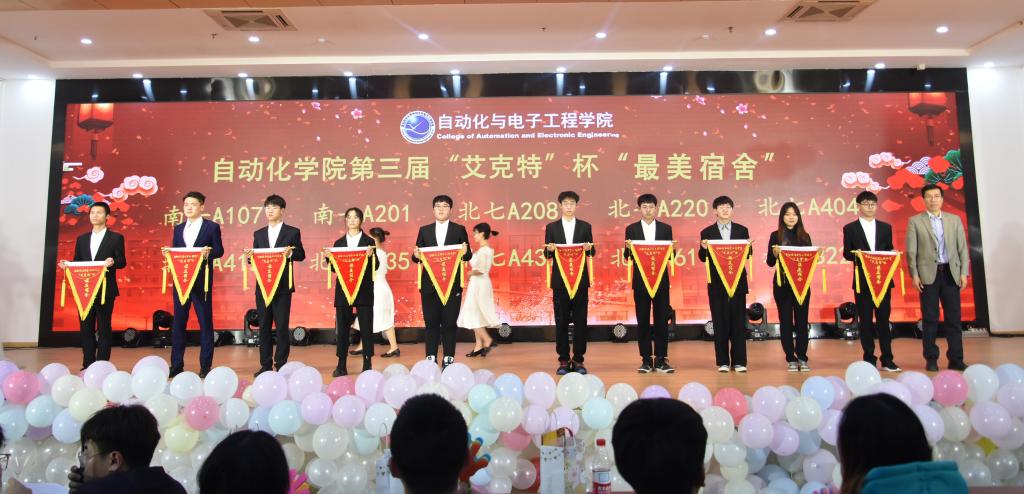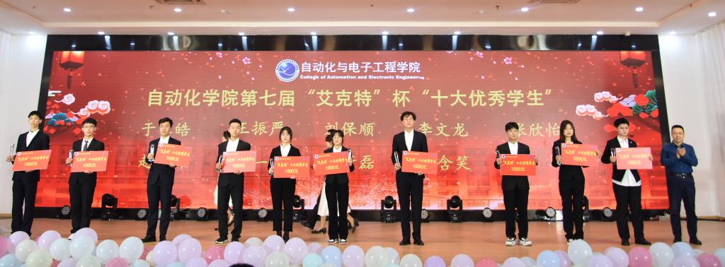 表彰大会上,吕万翔、李华、李猛、吕德谦、曹梦龙、马寒分别为在第七届“艾克特”杯十大优秀学生评选活动、2021年全国大学生电子设计竞赛、第十六届大学生智能汽车竞赛、第三届“艾克特”杯“最美宿舍”评选活动、第十六届“西门子杯”中国智能制造挑战赛、爱体育“健康跑”打卡排行榜中优胜同学颁奖。
