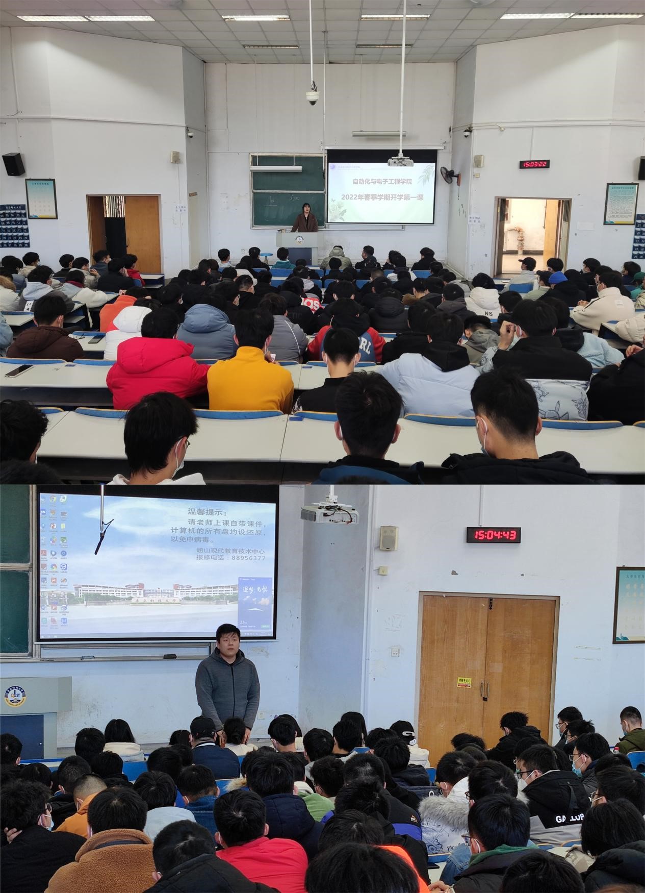 坚定理想信念,锤炼自身本领。各年级辅导员从持续推进党史学习教育、深入学习十九届六中全会精神、弘扬伟大建党精神等角度进一步加强学生理论武装,推动学生自觉提高思想政治水平,树牢“四个意识”,坚定正确理想信念。结合2021年学生工作和寒假社会实践,总结复盘上学期各项活动,剖析规划新学期方向与目标,号召同学们做到勤学慎思笃行,时刻保持锐意进取的干劲、敢为人先的闯劲、百折不挠的韧劲,为祖国和社会发展贡献力量,以良好精神面貌迎接二十大的到来。