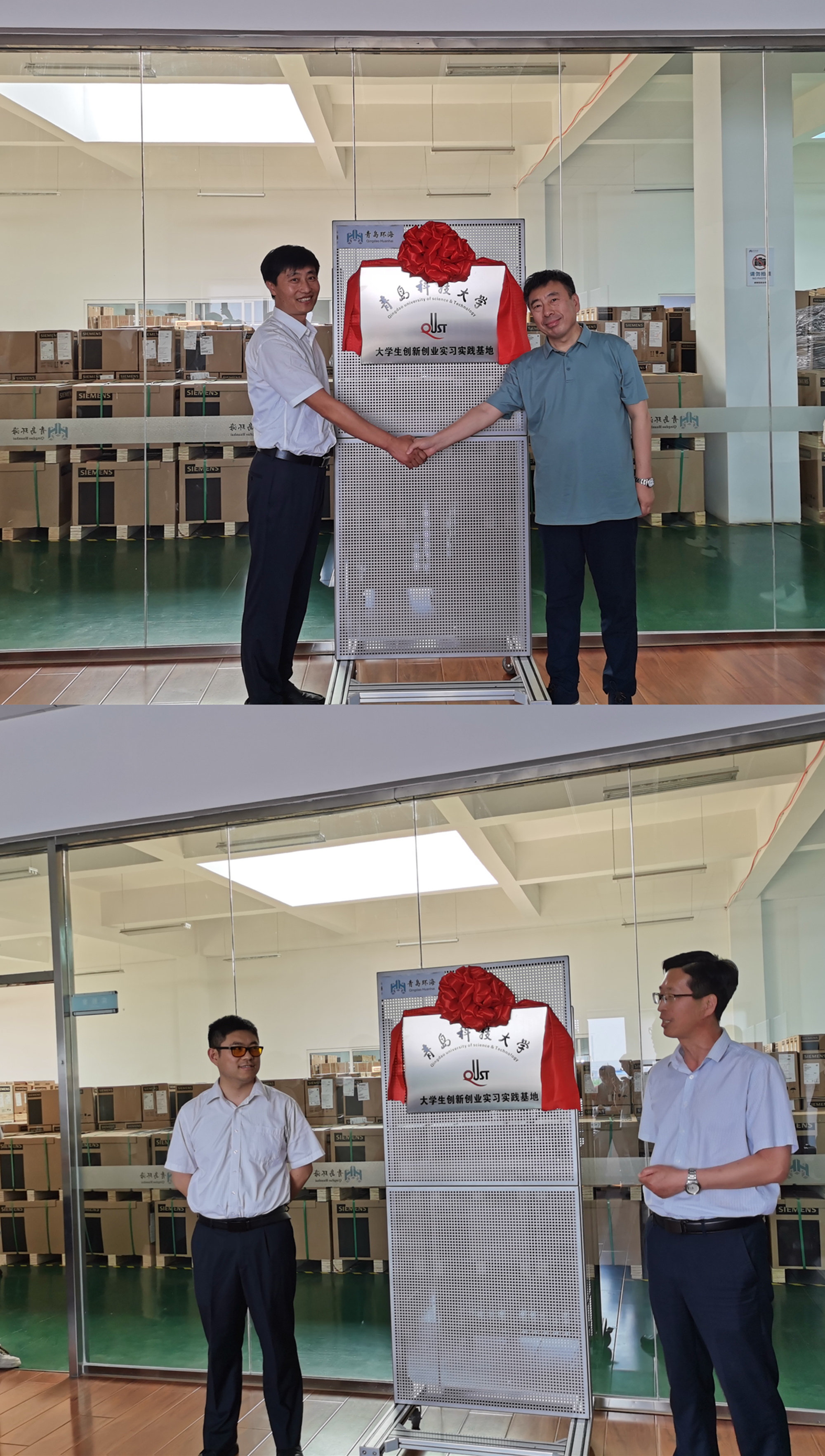 和企业签署校企合作协议,徐华与袁春雷共同为实践基地揭牌。