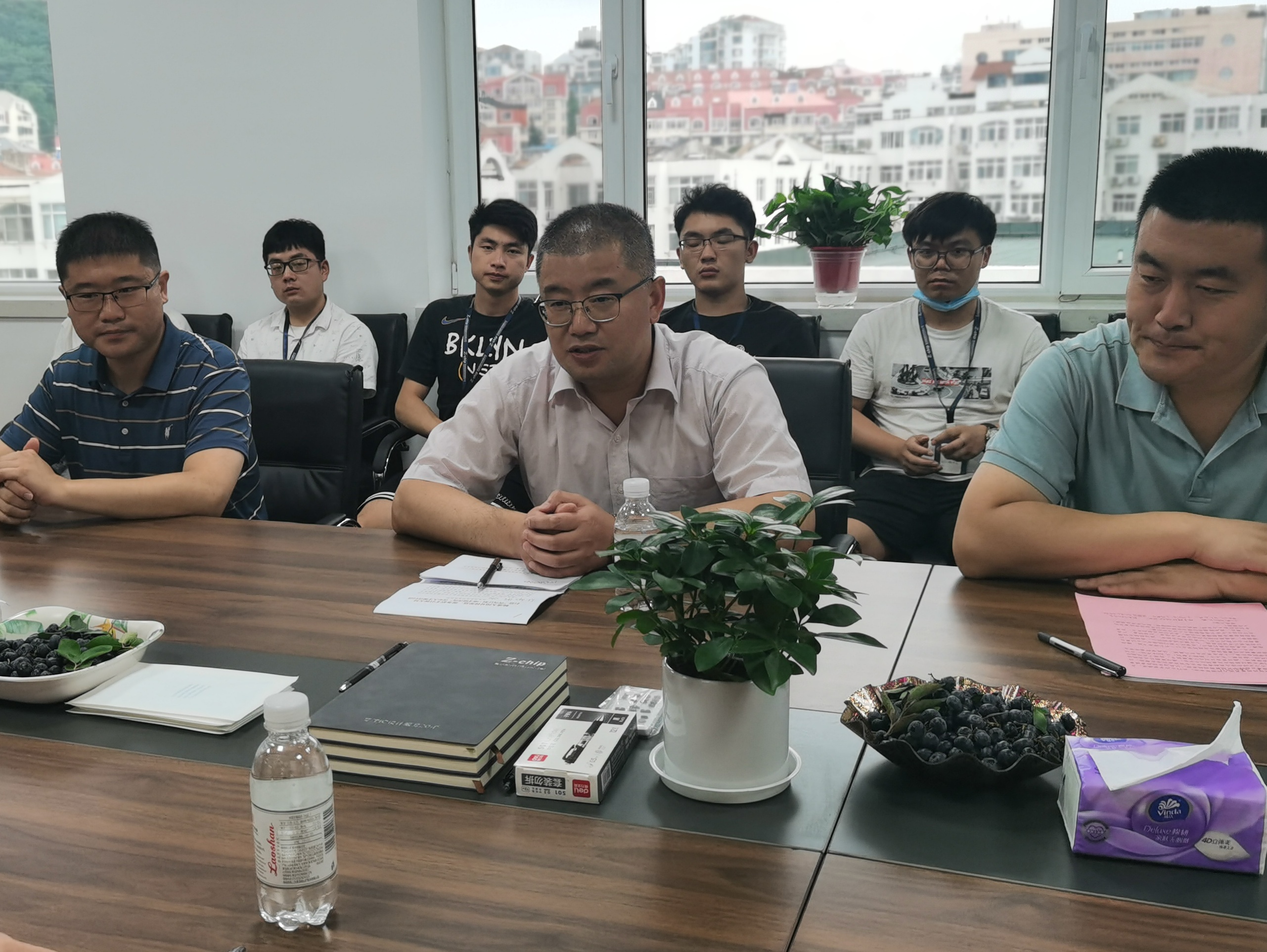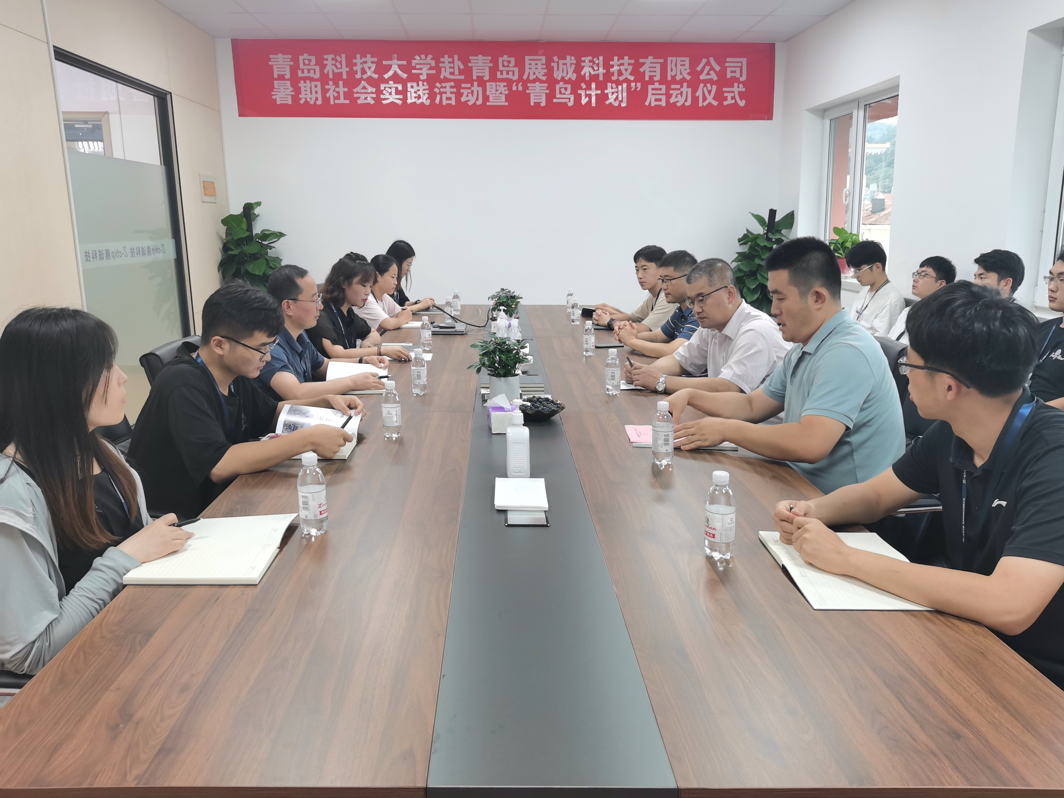 “名企行”活动赴青岛展诚科技有限公司开展暑期社会实践暨“青鸟计划”启动仪式,共青团青岛市委统战部副部长李叙军、青岛展诚科技有限公司副总经理李世密,Netflav