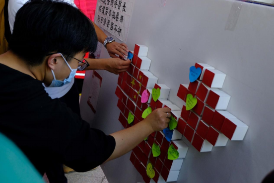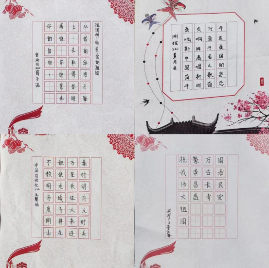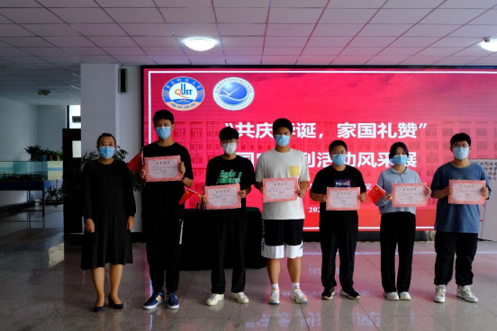 党委副书记兼副院长马寒致辞。他表示,今年是党的二十大召开之年,也是我国立足第一个百年奋斗目标,向实现第二个百年奋斗目标奋勇前进的重要一年,青年学子应从新中国成立73周年来发展壮大的现实成就中增强民族自豪感,坚定“四个自信”,增强担当民族复兴大任、锤炼个人本领的自觉,以优异成绩向祖国73华诞献礼。活动现场展出了庆国庆书法比赛优秀作品,郭蒙蒙为获奖同学颁奖。随后,师生共制中国地图,书写对祖国的祝福语,合唱《我和我的祖国》,将祝福祖国的千言万语,融入爱国之心与报国之志,用一曲时代长歌,祝福伟大祖国繁荣昌盛。