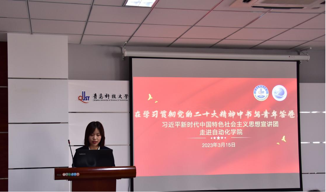 师生代表总结发言。马仁轩表示,党员同志、学生干部要牢记习近平总书记的嘱托,自信自强,守正创新,踔厉奋发,勇毅前行,更加积极地以实际行动践行“请党放心,强国有我”的青春誓言。边泳名表示,此次宣讲带领大家从专业角度深入学习了党的二十大精神。作为一名青年党员、学生干部,她结合自身成长发展经历,号召更多青年坚定理想信念,厚植爱国情怀,练就过硬本领,强化使命担当,让青春在全面建设社会主义现代化国家的火热实践中绽放绚丽之花。