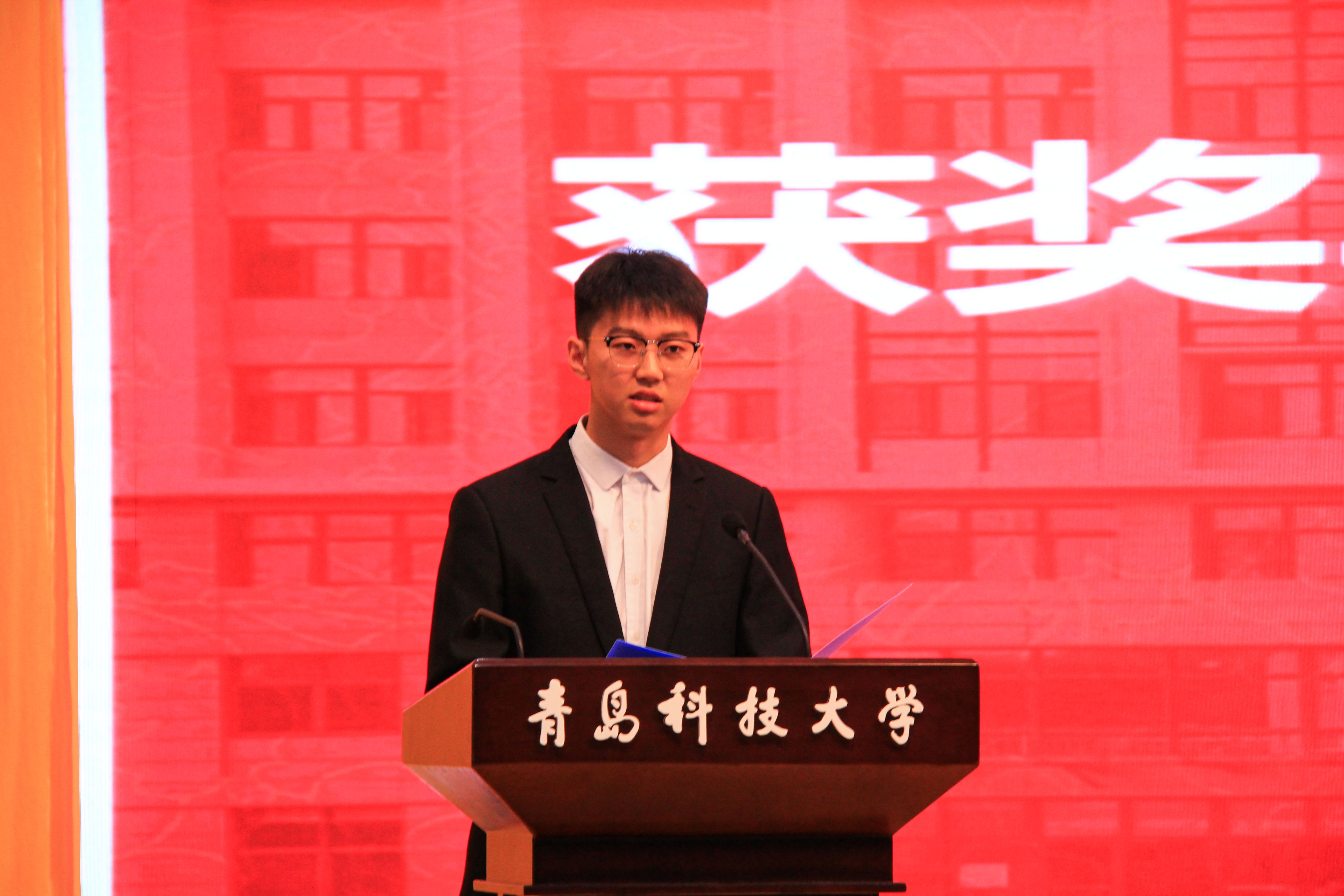 获奖学生代表测控192范家兴表达了对化自86级校友的感激之情,同时号召同学们向身边优秀同学学习,在见贤思齐中肯定自我,成就自我。