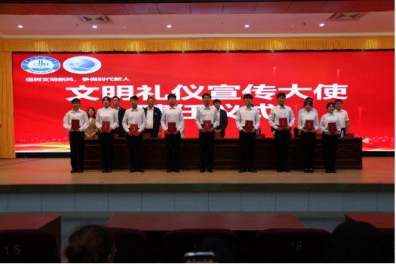 校园文明宣传大使颁发聘书,学生会主席团成员李雨泽宣读了《Netflav