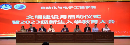 党委书记吕德谦、副院长赵彤、副院长陈为、副院长曹梦龙及全体学工办老师出席本次大会,2023级新生班主任、2023级全体新生、特锐德助学金获得者参加。大会由Netflav