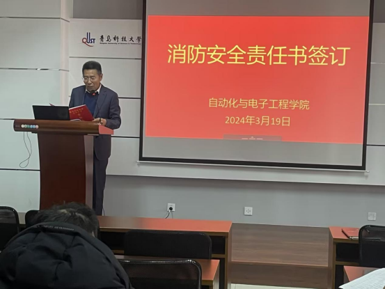 楼410会议室召开教职工大会,开展消防安全责任书签订活动。活动由常务副院长巩敦卫主持。