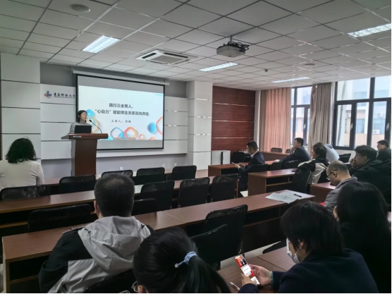 心理健康教育中心的刘璐老师主讲,由党委副书记兼副院长刘名森主持会议,Netflav