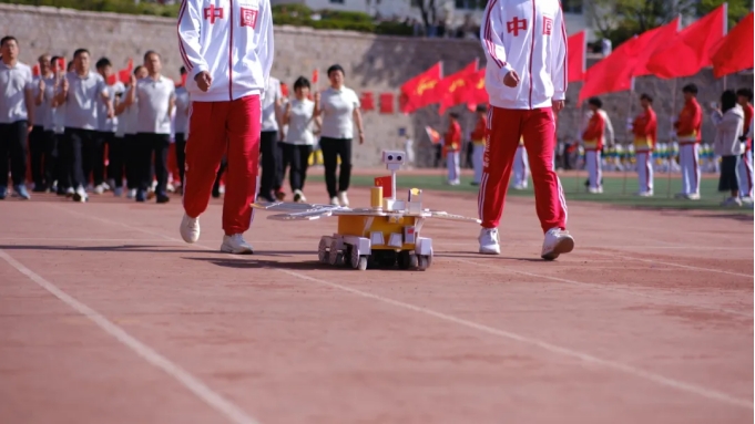 与方队共同行进的“天问一号”火星车