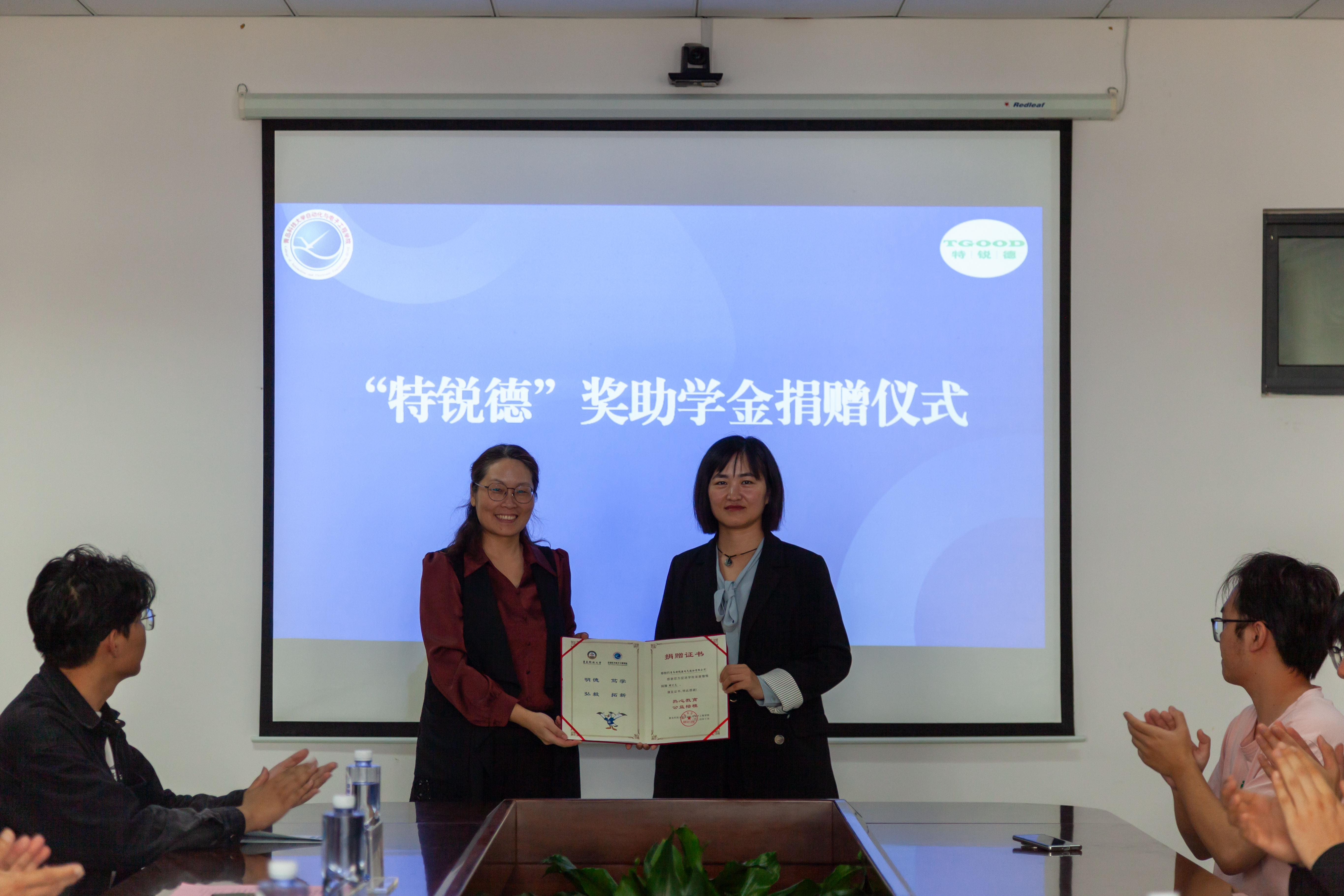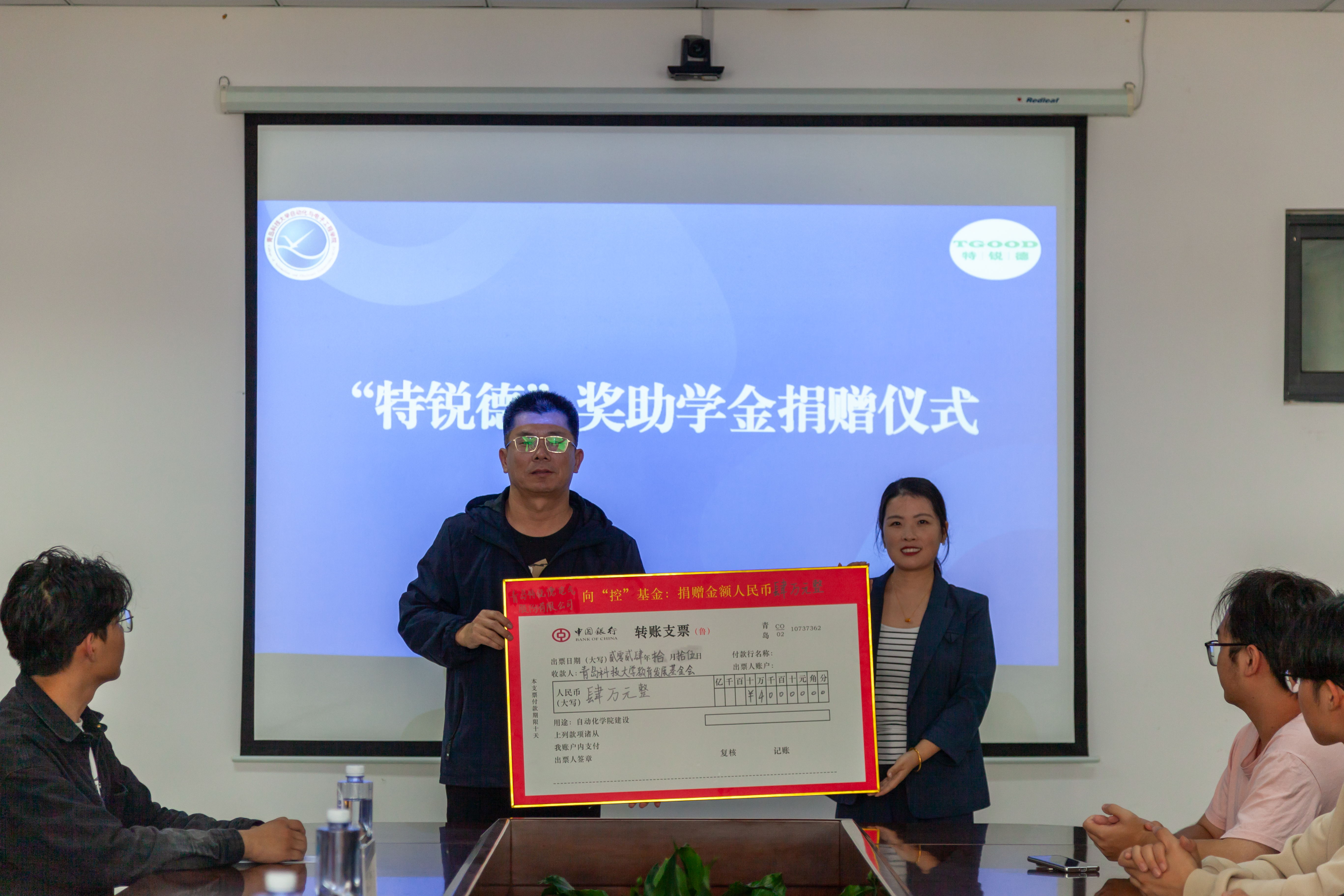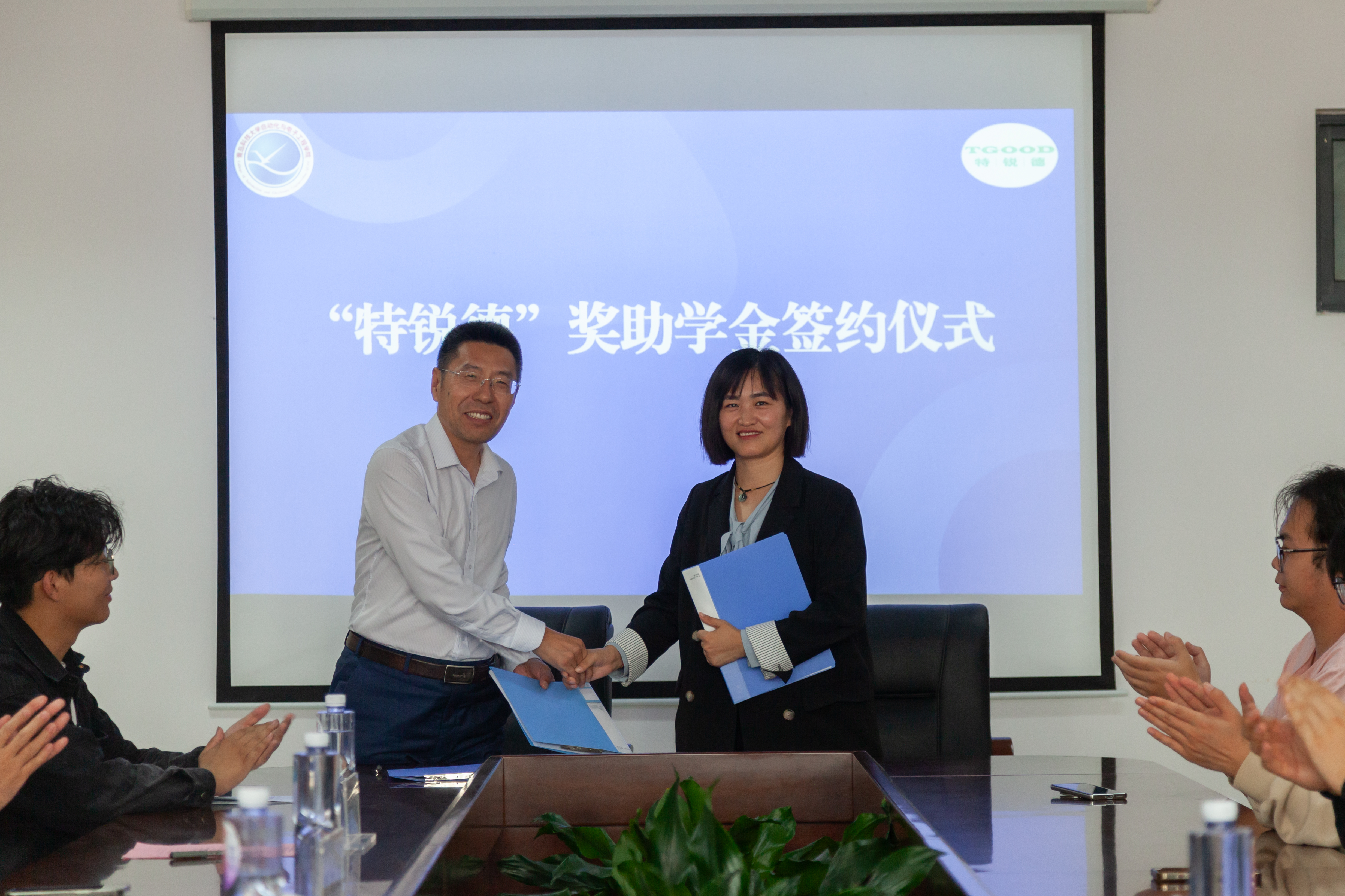 对公司的诚挚感谢和崇高敬意。巩敦卫与韩增雪共同签署了“特锐德”奖助学金合作协议,本次签约为双方第二年签约,标志着双方合作迈出了坚实的一步。张莹与刘名森进行了捐赠交接。