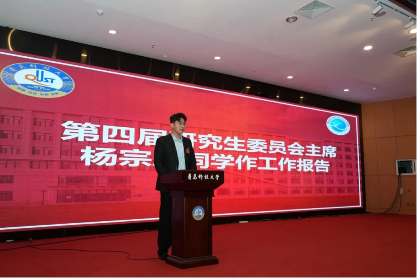 第四届研究生委员会代表杨宗霖向大会作工作报告,从党建引领、科研育人、Netflav