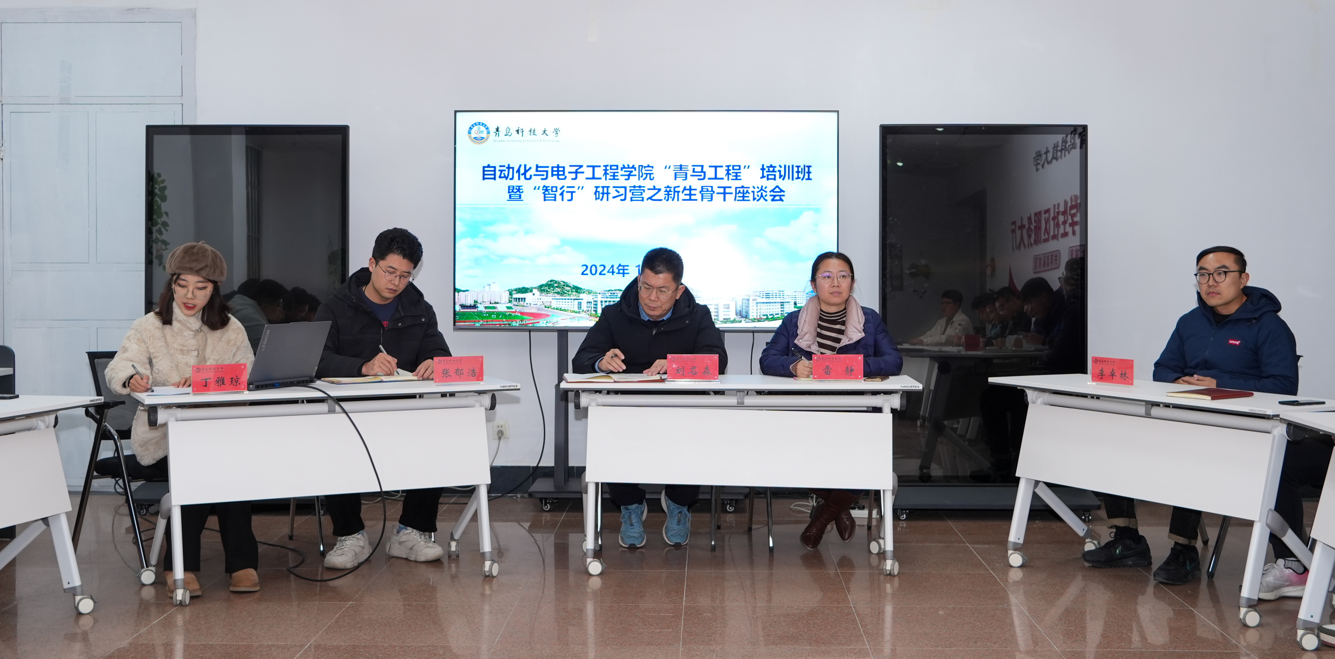党委副书记兼副院长刘名森,团委书记兼学工办主任雷静,团委副书记兼学工办副主任张郁浩,团委老师李卓林,2021级、2023级班级骨干代表,2024级各班班长、团支书参加会议,会议由团委老师丁雅琼主持。