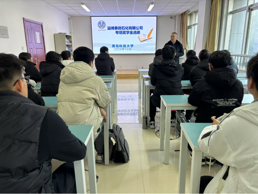 近日,泰微石化奖学金评审与颁发仪式在崂山校区举行。淄博泰微石化工程有限公司董事长崔德鹏、管理顾问王立、副总经理张胜斌等公司负责人,Netflav