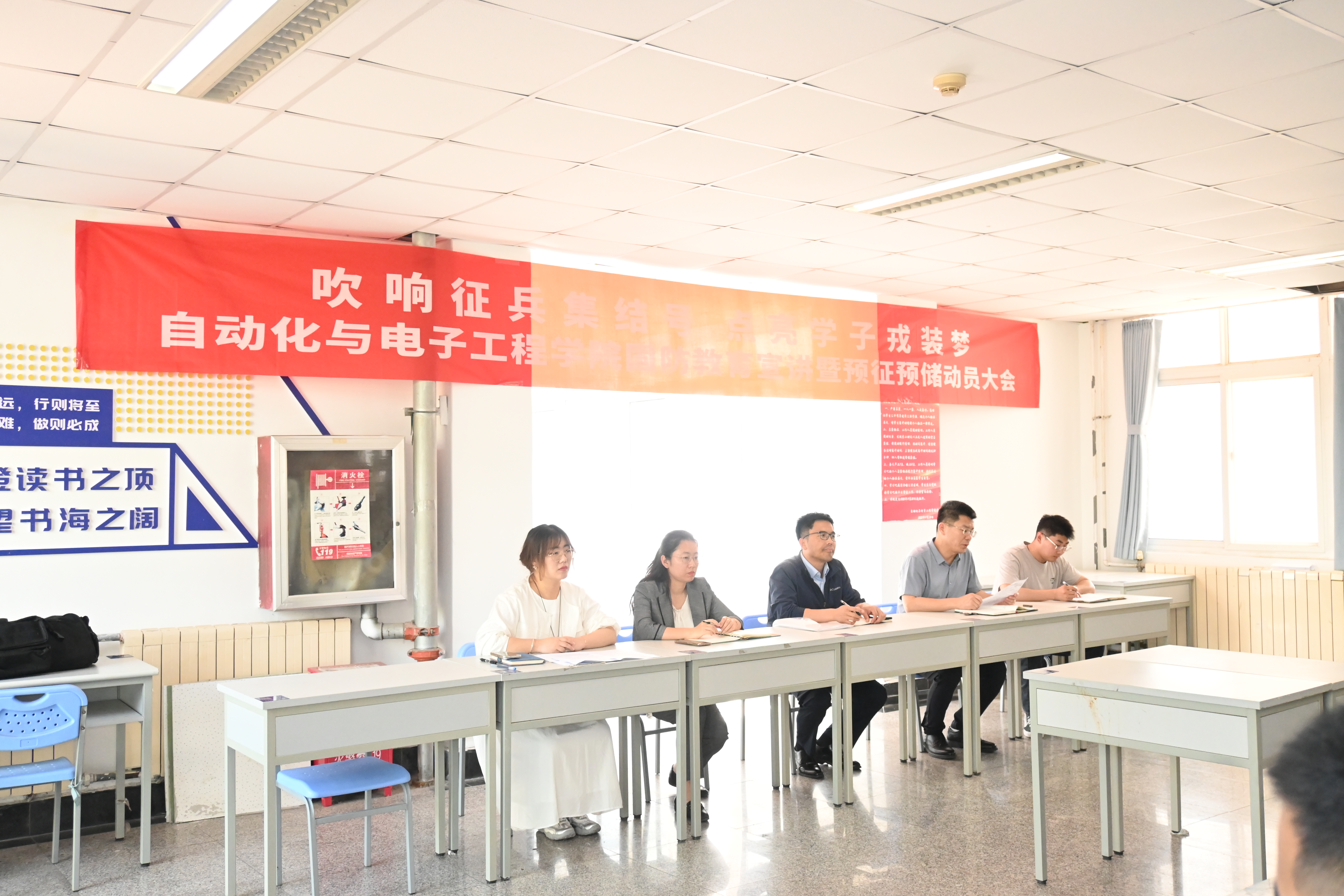 于北苑学生公寓七号楼一站式学生社区举办“吹响征兵集结号 点亮学子戎装梦”国防教育宣讲暨预征预储动员大会。校党委学生工作部副部长、武装部副部长李春家、Netflav