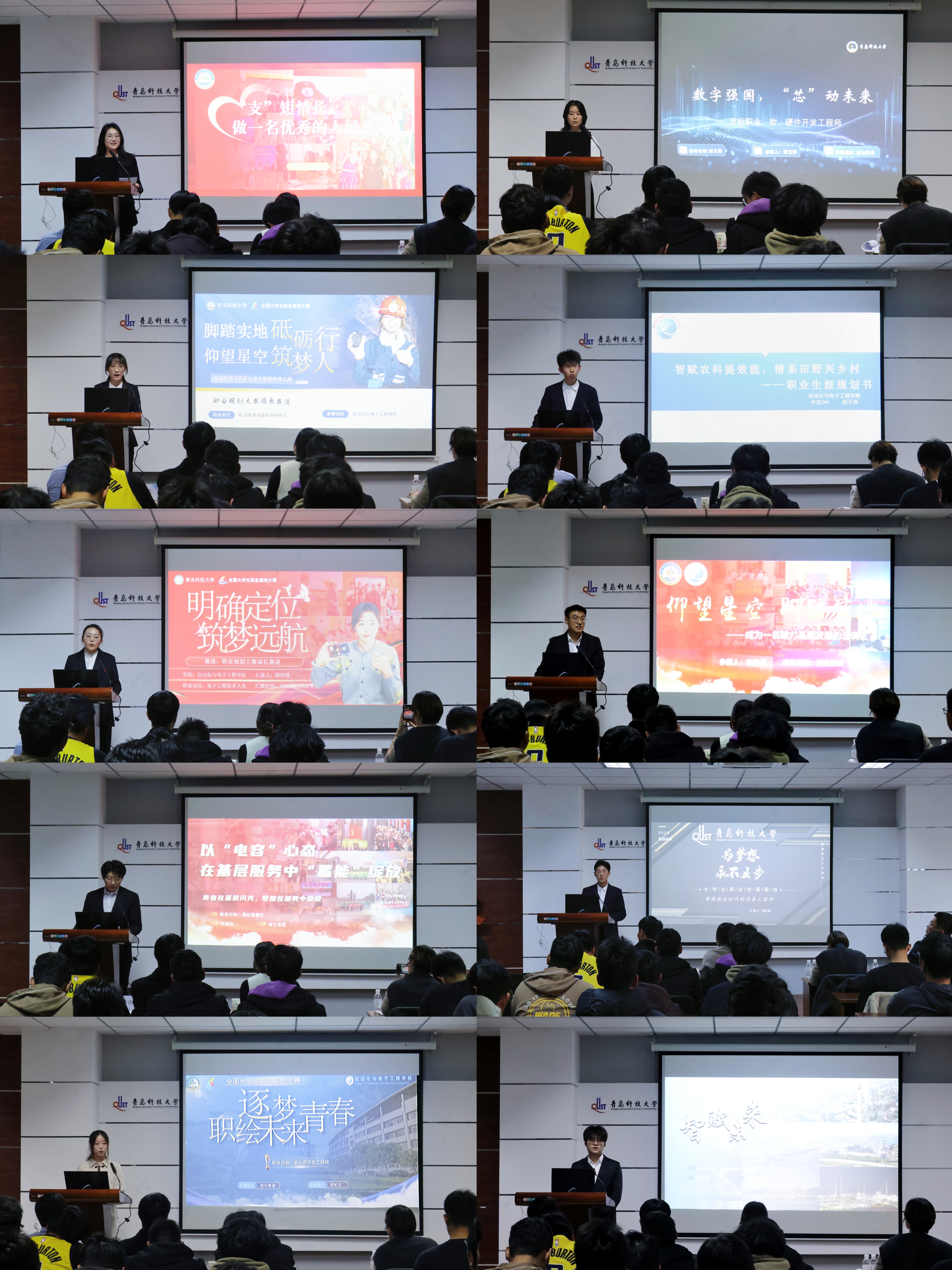 本次大赛自启动以来,全院近2000名学生积极参与,经过层层选拔,最终10名选手脱颖而出,晋级决赛。决赛分为就业赛道与成长赛道进行展示,就业赛道选手围绕各自职业规划,紧密结合所学专业,全面阐述未来职业目标、发展路径及具体实现策略;成长赛道选手侧重于个人成长与技能提升,分享了在校期间的学习规划、实习体验及职业展望。评委们围绕职业定位、行业认知等核心问题提问,精准点评选手表现并给出专业建议,助力选手完善规划、明晰方向。