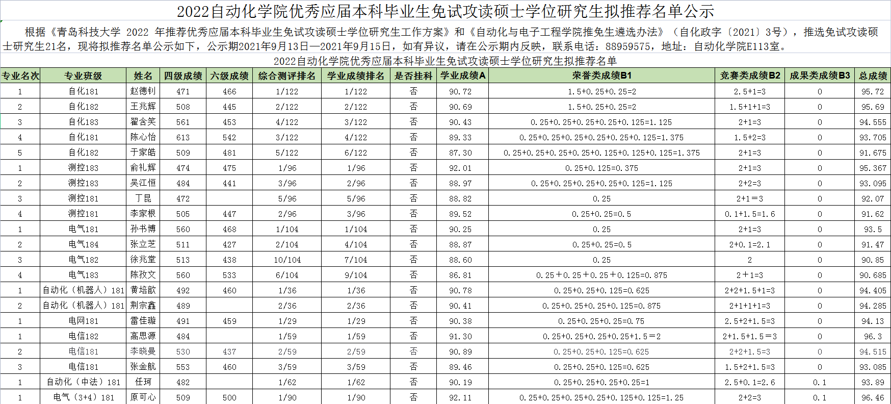 Netflav 2022优秀应届本科毕业生免试攻读硕士学位研究生拟推荐名单公示