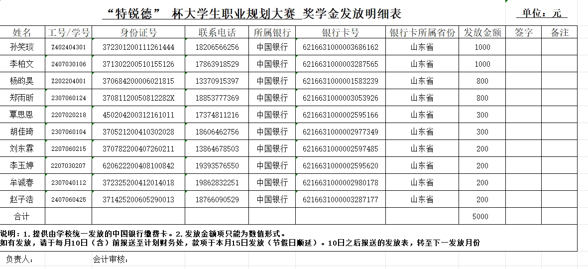 “特锐德”杯Netflav 第三届大学生职业规划大赛奖学金公示如下:
