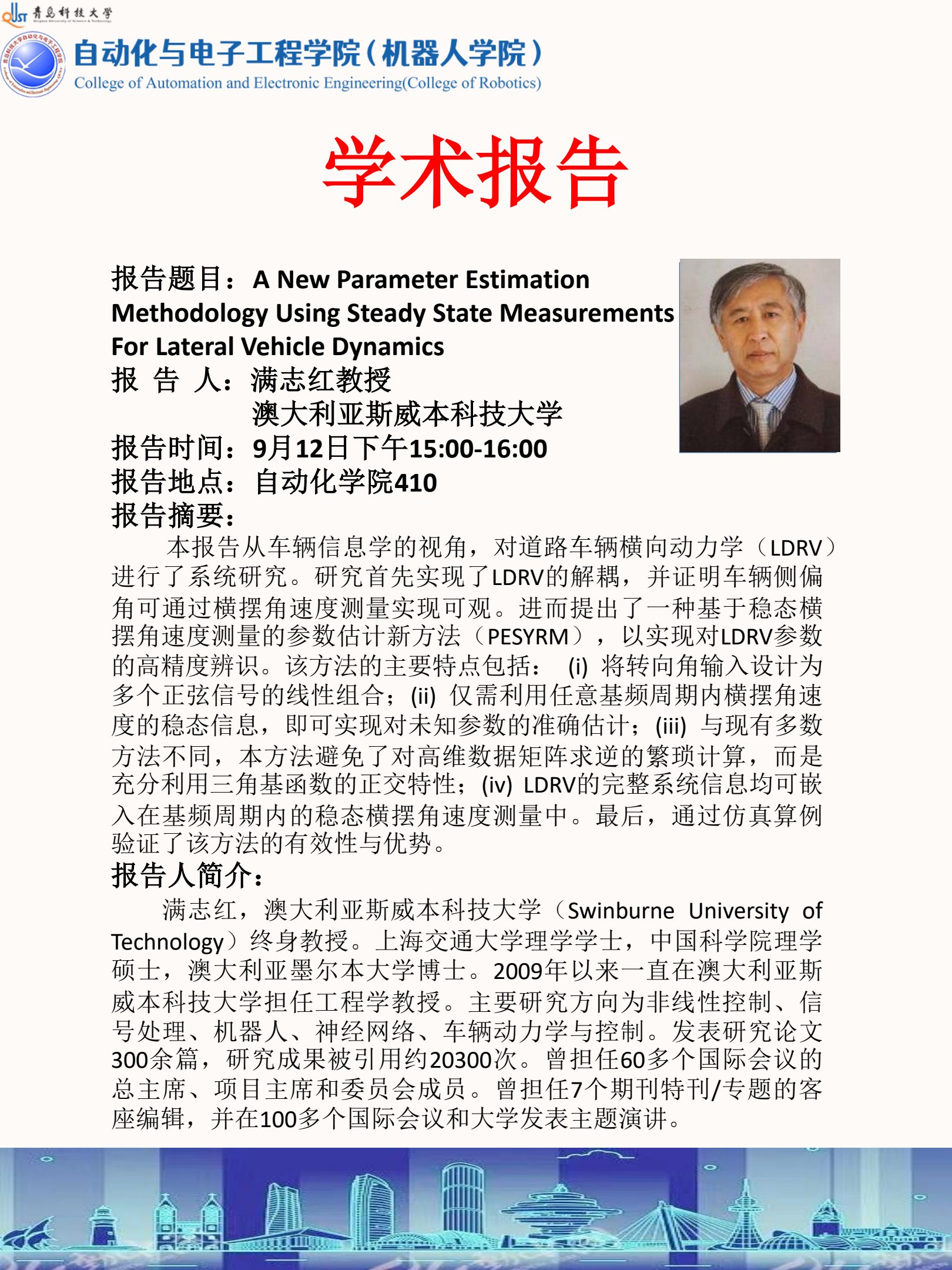 下一篇:新加坡南洋理工大学Yeng Chai SOH教授学术报告