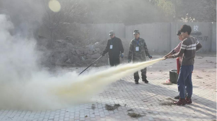 为了让同学们掌握灭火器的基本操作技能,每个班出一个人,用实操让同学们熟悉灭火器的使用方法。