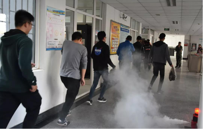 赵老师在宣讲的过程中结合实际,每个能力对应一个事例,并对事例的前因后果进行解剖,指出问题所在,点明杜绝、解决的方法。在赵老师宣讲完之后,全体学生回到各自宿舍,准备下一个环节:应急疏散演练。
