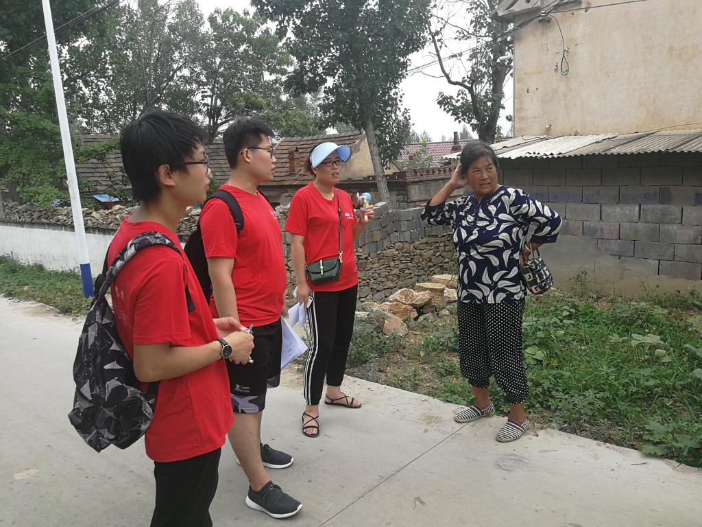 (图为队员们与来石庄村的妇女主任进行交谈)