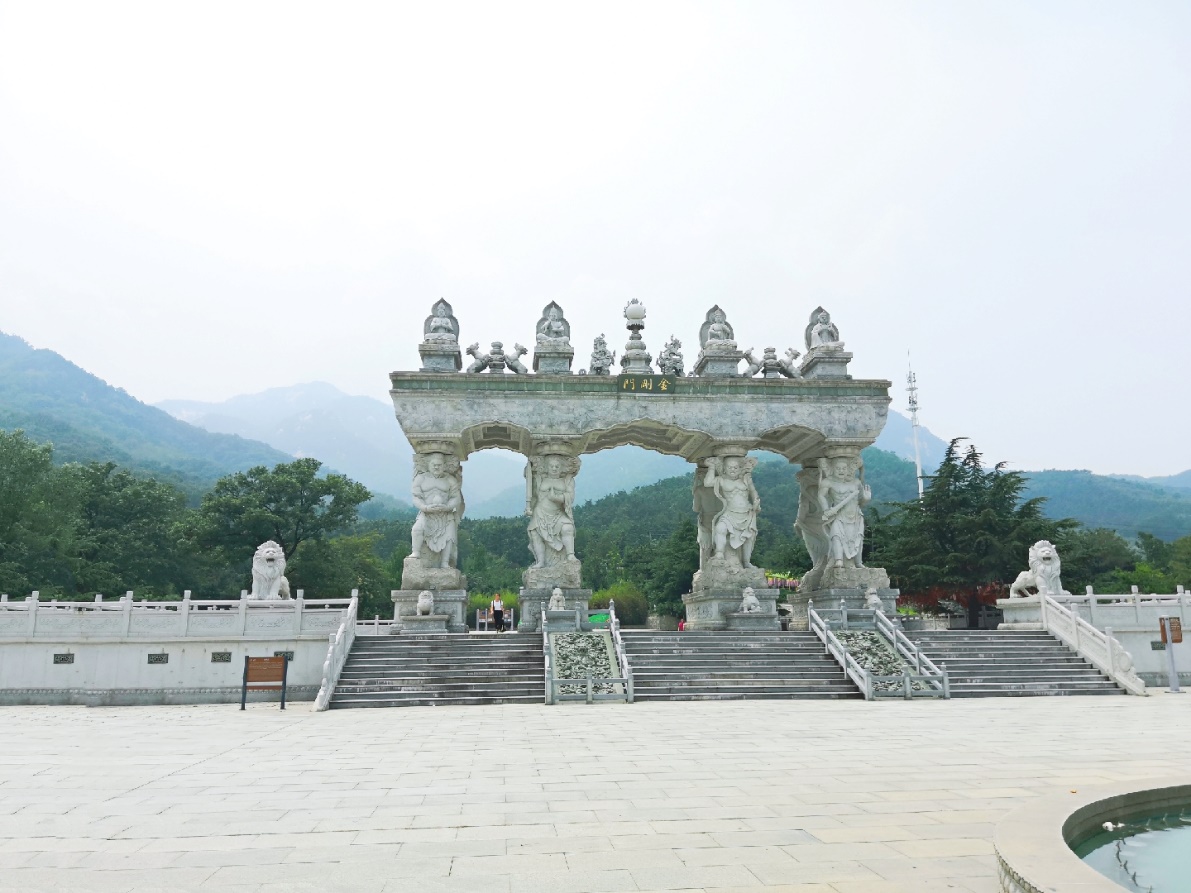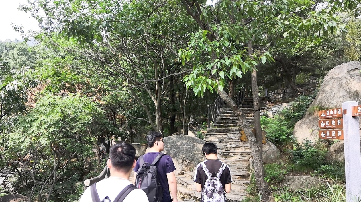 队员们首先到达的是金刚门景点,这是景区的大门,门柱由八尊整石雕凿的金刚塑像组成。建筑风格中西结合,阴阳和谐,气势雄伟,工艺精湛,体现了人文与自然之和谐统一,为沂蒙山区人文地理重要标志之一。全体队员们进入金刚门后,沿着修筑的登山石阶一路向上,约20分钟后便来到了雨王庙景点,雨王庙又称龙王庙,是当地举行隆重祭祀活动的重要场所之一,整体建筑飞檐雕栋,气派庄严。 不远处是流碧桥景点,在此处溪水从桥间流过顺势而下,流入山涧,溪水清澈见底,像流动的碧玉,四周云雾缭绕。