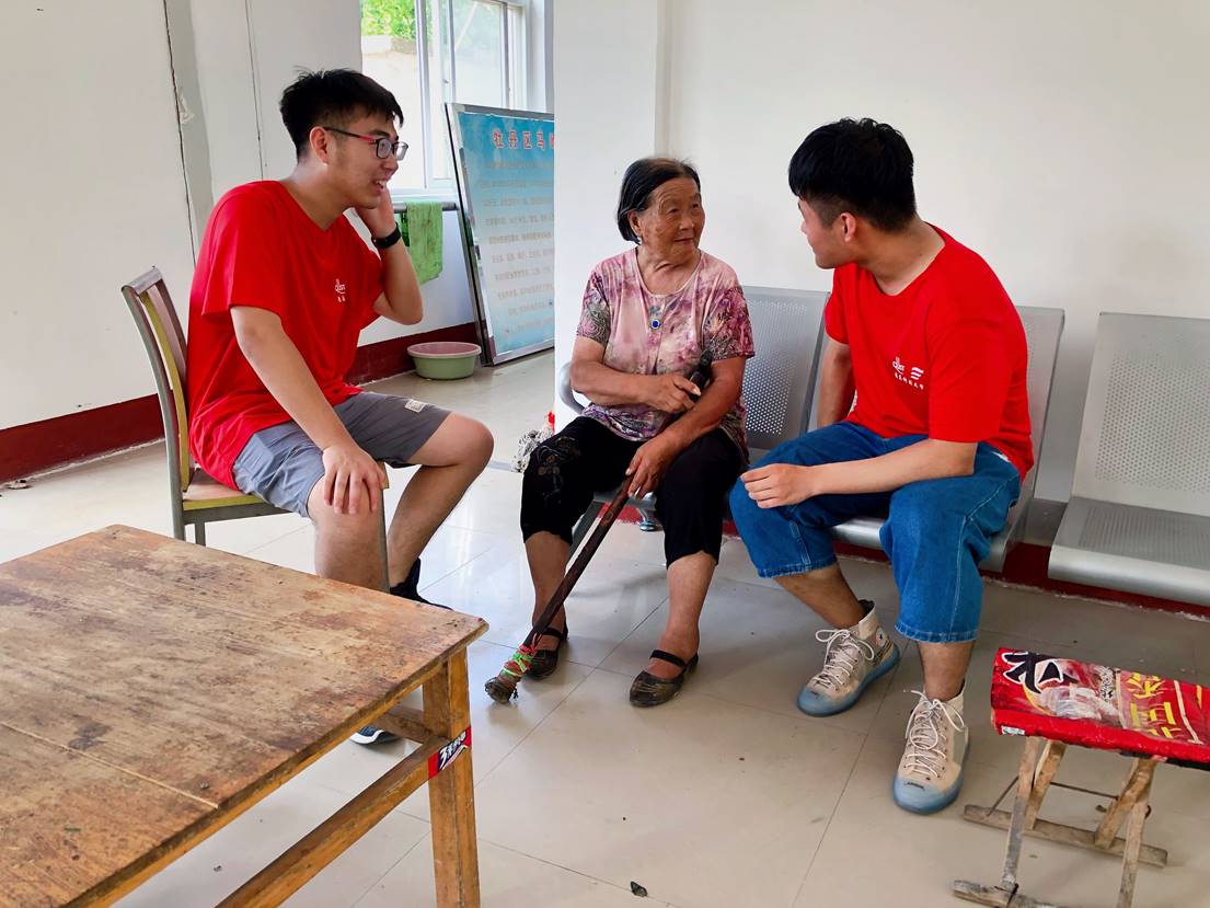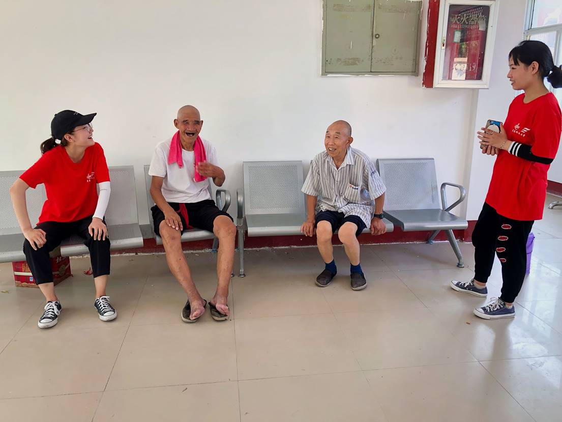 9:30队员们开始与老人们联络感情。一位80岁的爷爷与队员们讲起当地生活的变化,曾经务农时每天的午饭只有馒头和咸菜,现在生活条件大大改善,吃得好,住得好,食堂的菜谱每天都不一样,衣食住行样样齐全。